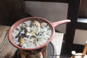 Just look closely in the “Chafing dish” and you will see the birds. I am taking Corants and putting them “to the broath” Yes, I can spell but I am quoting Gulielma Penn from her receipt book transcribed by Edward Blackfan for William Penn Jr. in 1702. William Jr arrived in Pennsylvania in December 1703 with his Mother’s receipts. The only other ingredients that will be added are marrow and “Croms of manchets” (bread of the whitest wheat flour). The final product below will be served on “tostes” (think toast or sippets). Visit my website at www.hearttohearthcookery.com.