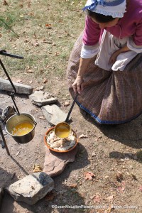 At a food preservation program this weekend, one of the receipts I prepared was To Pott Chickins. I baked, boned and seasoned four chickens with salt, pepper, mace and cloves. Pictured at left, I am adding a good quart of butter prior to baking. When the chicken was tender, it was pressed with more clarified butter and put close in potts. Thus potted, the chicken will keep for use when covered with even more clarified butter to cover.