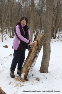I posted the first step in historic maple sugaring on March 4th with the post “A Spile for Sap”. Trough making was more involved than making a spile! I must confess even though I worked hard at completing the task with the bowl adze and have healing blisters to show for it, I did not have a finished trough by lunchtime but it somewhat looked like it was getting there. I went to lunch and the instructor had it completed by the time I got back! I tried to make myself feel somewhat better by saying that I had left the easy part. These troughs were used for collecting the sap prior to the coopered sap bucket. About 1840’s-1850’s there were more coopered sap buckets in use than troughs. The troughs, typically of poplar or ash would last approximately 4 years.