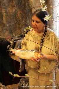 It is swha na’ mek gee’ shuch (shad fishing time) when the swha na’ mek in’ chy (shad bush) is in bloom. While holding a buck swha na’ mek (shad), I am smelling the fragrant blossoms of the shad bush. The words in italics are all phonetic spellings of Lenape words. When the shad bush bloomed, this indicated it was time for the dug out canoes to be brought up from the mud of the waterways and many men and women to prepare for living at the rivers edge for several months fishing.