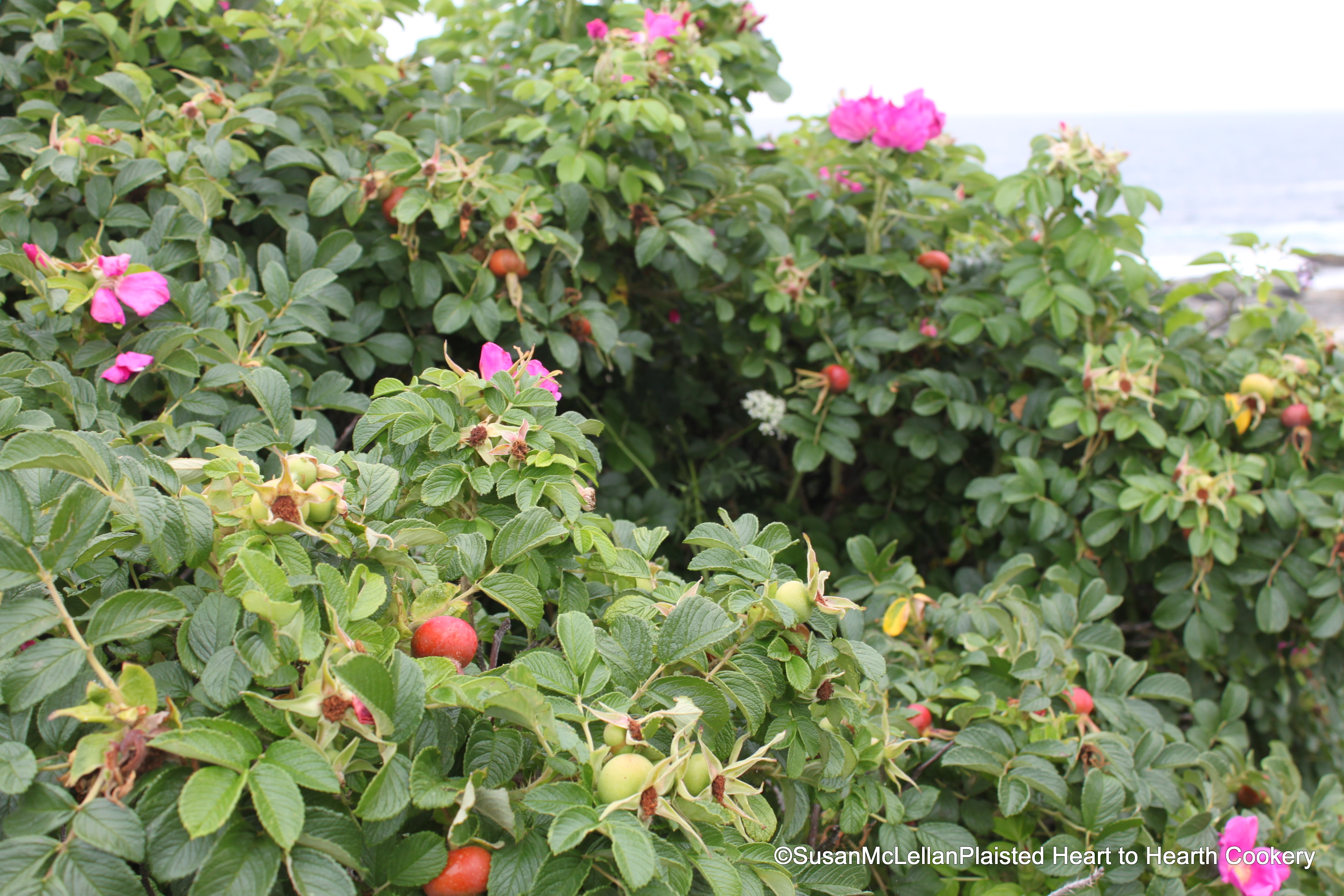 As I was eating some shrimp, clams, and scallops by the Atlantic Ocean in Maine, I looked at the familiar site of the roses that grow near the ocean with a different eye. I have seen these roses all my life. My Mother liked them so much that she tried to transplant some to our house. But while eating this time, my mind was full of questions. Were these roses indigenous to this country? The petals are single, five and color pink which are known typical native rose characteristics but European roses were introduced to this country very early. And look at the size of those rose hips! What a rich source of Vitamin C, A, B3, D and E, bioflavonoids, citric acid, and zinc! If anyone knows more about this rose pictured, please comment below or e-mail me at foodhxsmp@gmail.com