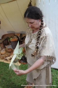 After harvesting an ear of Lenape white flour corn in the green stage, I removed the corn silks to dry  for both food and medicinal uses.  The corn silk is part of the reproduction system of the plant that carries the pollen from the male tassles to germinate the individual kernels of the corn.  There is one corn silk for each kernel of corn!