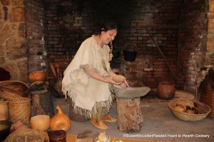 Yesterday, November 12, 2011, I transformed an exhibit hearth at Waterloo Village to convey the feel of the harvest and food preparation in a Lenape village for the first “An Original Thanksgiving” program sponsored by Winakung at Waterloo, Inc and the New Jersey Highlands Coalition. From 11 am until 4 pm, I was honored to bring the message of giving thanks for all that was harvested from the earth to many people of all ages.