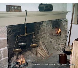 The snow falling this weekend reminded me of my firing this side bake oven one winter when there was snow on the ground. No one remembered the last time the oven had been fired. Caution was used to heat the oven slowly. In the picture, my bake oven rake is in back of the large crock holding the sponge for the bread prepared from barm the night before. And just part of one of my three drying racks appears in the lower right corner.