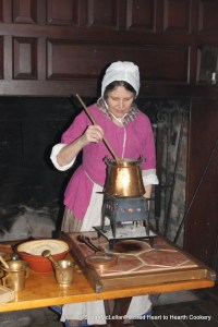 At the annual Washington Birthday Celebration at the Johnson Ferry House located in Washington Crossing Park, New Jersey, the large hearth that was the center of 18th century life was lifeless. Just recently, fires have been banned until chimney work is completed. In an attempt to bring a little glow and life to the kitchen, I used a reproduction brazier as a heat source to prepare an early gingerbread receipt. Braziers provide a way for sites that have insurmountable problems with using a hearth to offer actual cooking programs and demonstrations but use of a hearth is always the best.