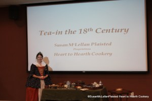 Last week I had the opportunity to present my power point presentation on tea with my 18th century tea paraphernalia on display. When I give this talk, I have the rare opportunity to dress as the mistress of the house who would be presiding over the tea. I take the audience from a tea farm to understand what effects the quality of tea and how tea is processed to an actual 18th century tea re-enacted.