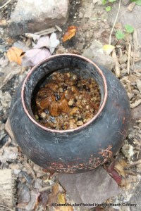 The excellent pottage, as described by John Heckewelder, containing dried vension pounded, hominy corn, dred beans, dried squash and chestnuts, is just as thick and tasty as it looks in the pot. This pottage is ready to eat!