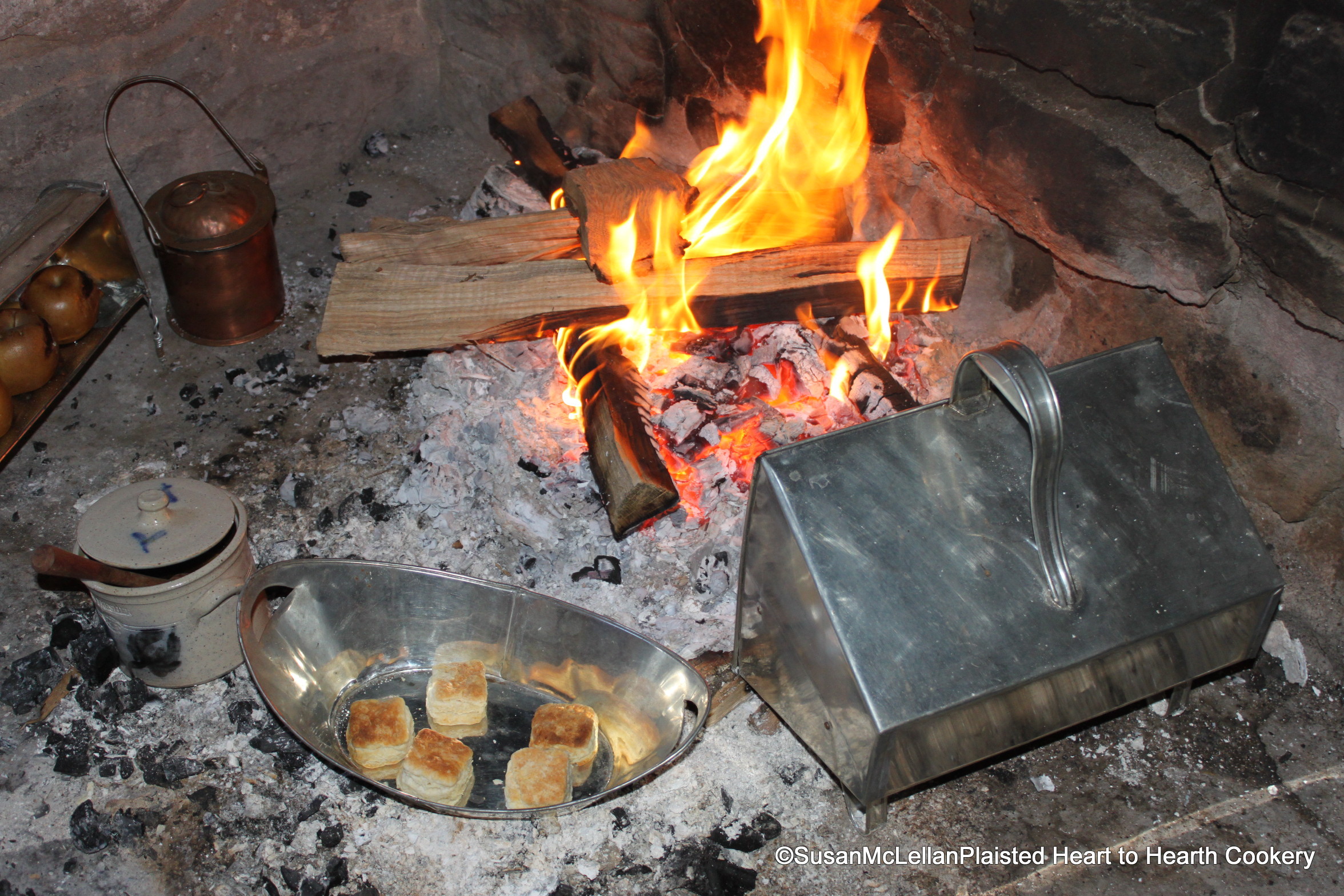 As the Lincoln bisuits were done, they were placed in a tin bowl (center) and samples were provided with sorghum molasses (in the stoneware crock). The temperature of the log cabin was so chilly even with the fire that the sorghum became too thick to serve if left on the work table.