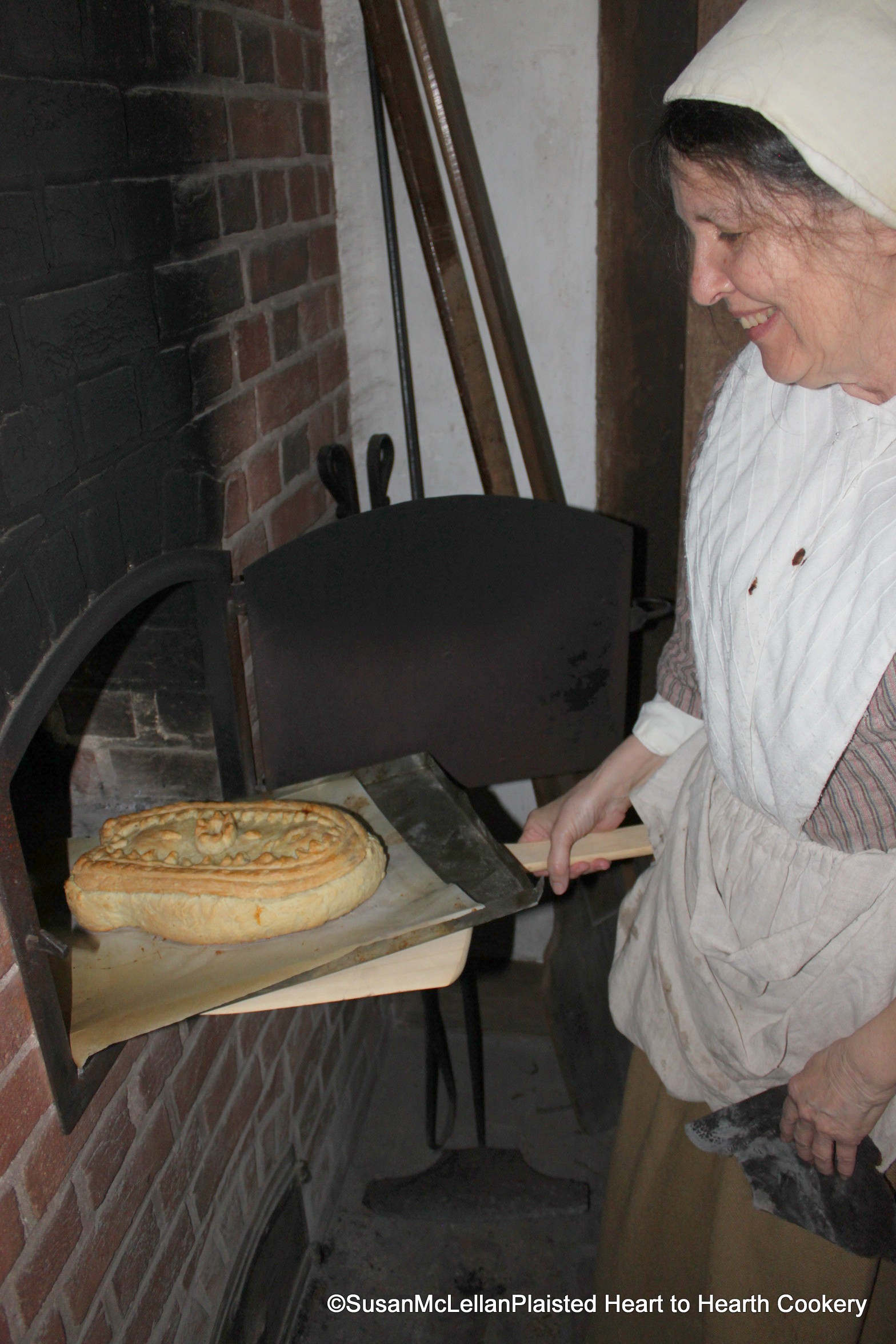 With all the work that went into preparing this Sturgeon Pie, especially the intricate pasty work for the lid, I am always a little anxious with the baking process in a bake oven. I am delighted that the the lid’s pastry work is highlighted with the nice even browning in the oven.