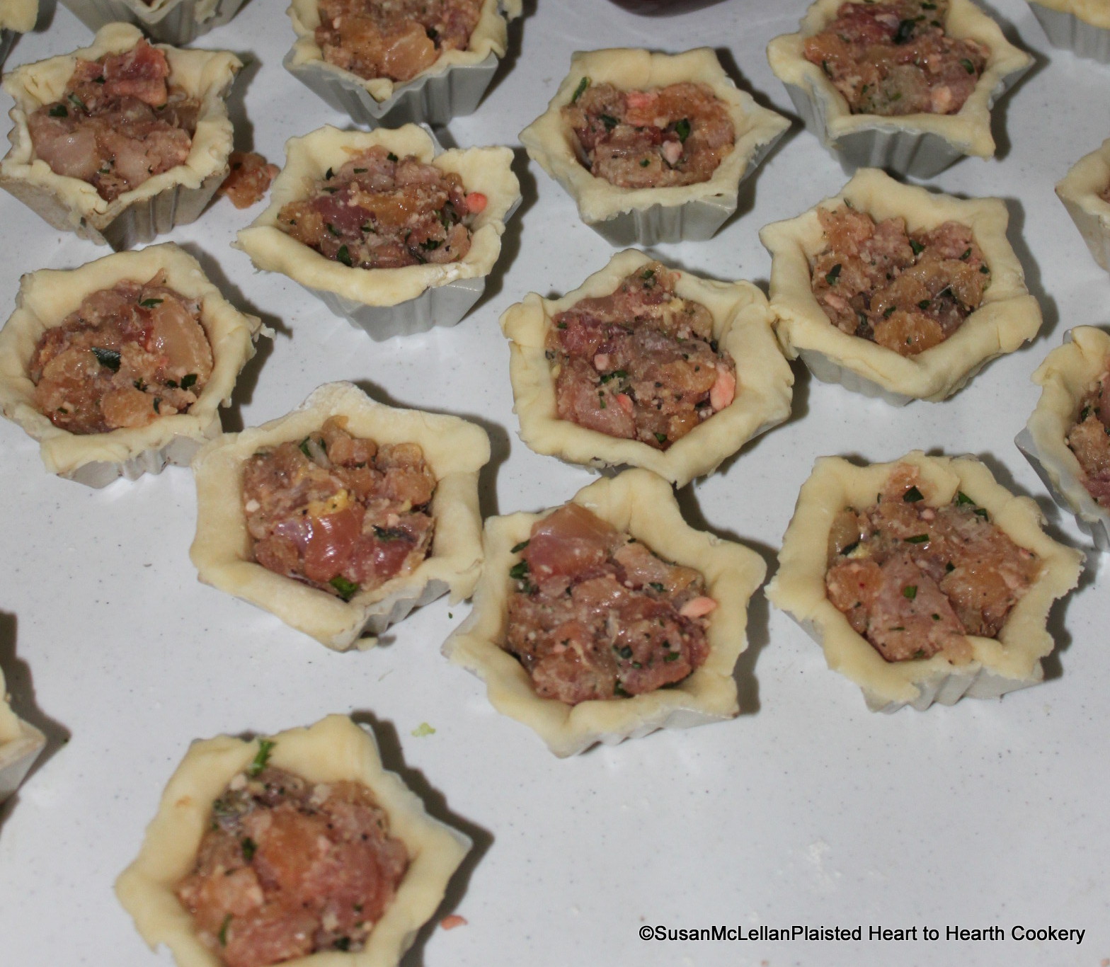 Just as the receipt (recipe) states above, the minced mixture has been placed in a fine paste in patty pans for baking.
