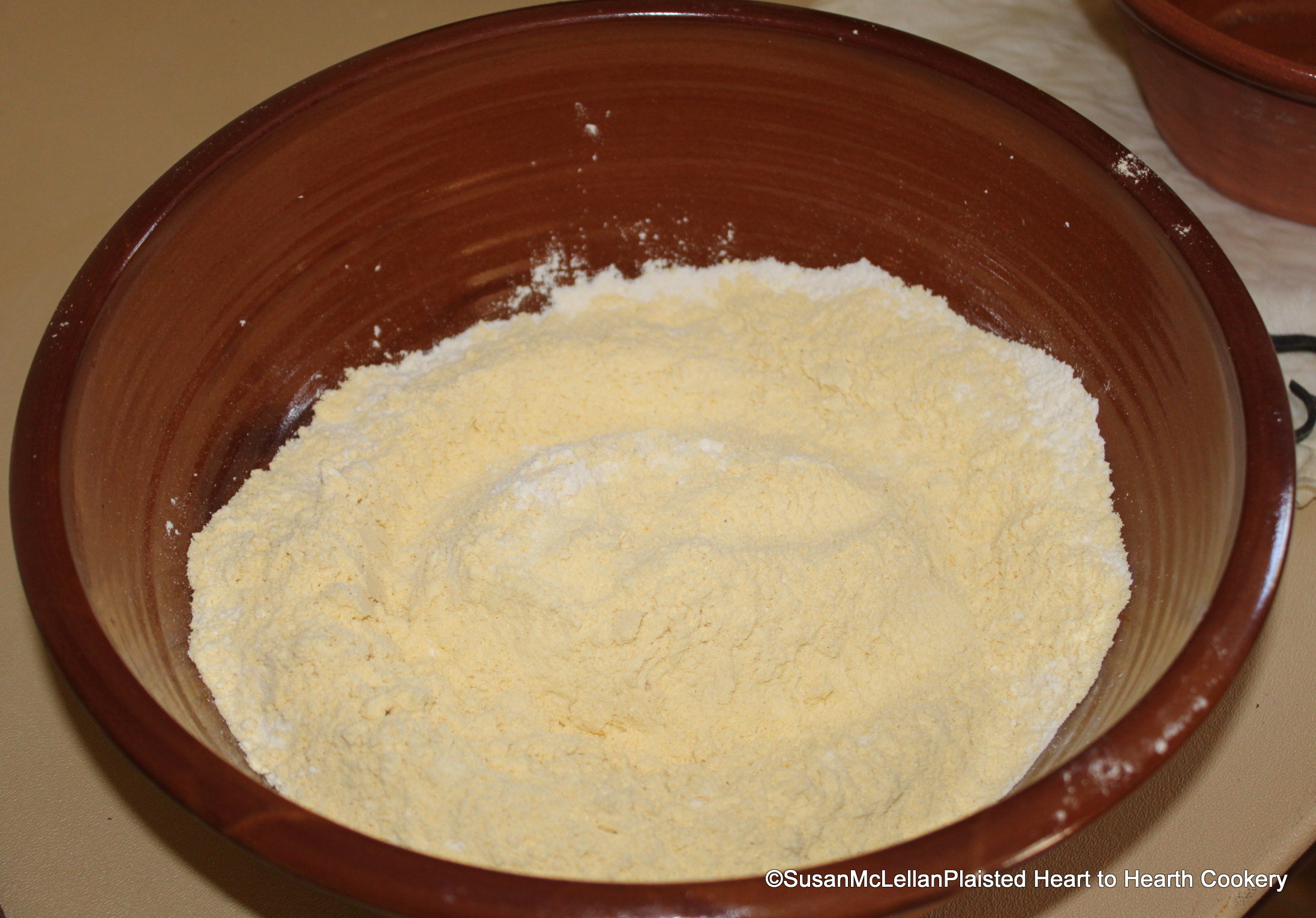 To prepare Eliza Leslie’s receipt (recipe) for Indian Muffins, a pint and a half of yellow Indian meal, and a handful of wheat flour were sifted and mixed together.