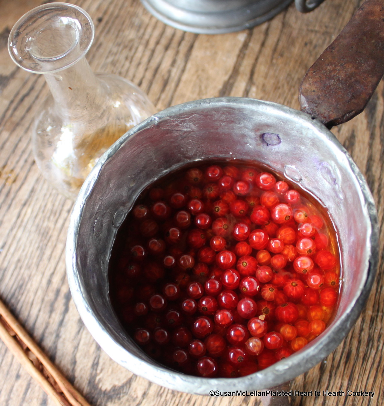 To the red currants for the receipt (recipe) To make Current Soup the following ingredients were added: take Rhenish wine, a little water, and a little Butter, sweeten with Sugar.