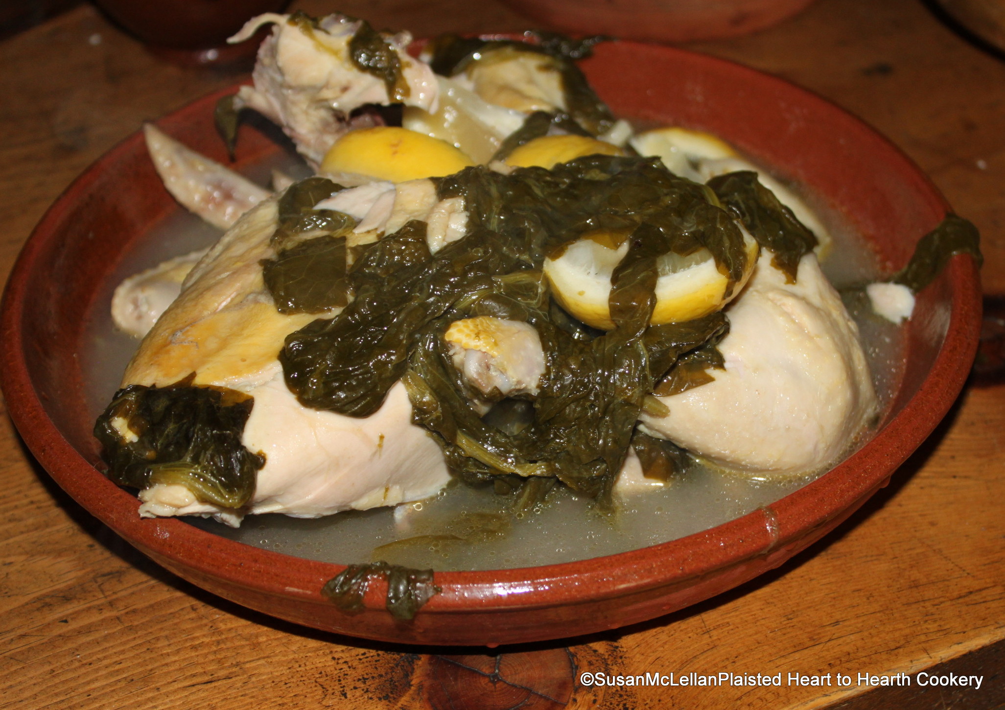 The flavor and aroma of the mace, verjuice, sorrel and lemon wafted through the kitchen as the Dutch receipt (recipe)-To stew a Hen with Sorrel– was presented for table with some broth. See previous post for receipt.