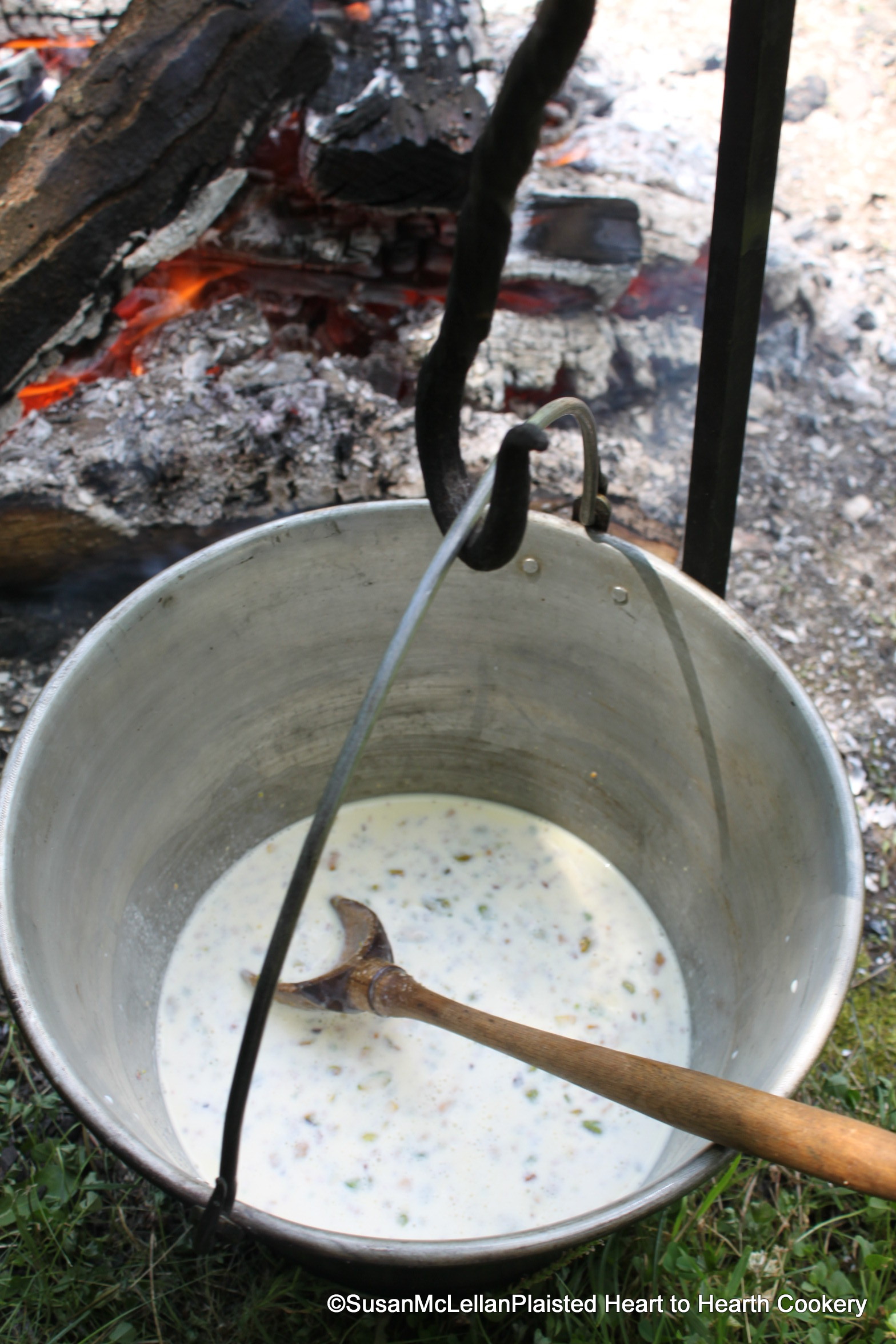 For the receipt (recipe) Pistachio Nut Cream Ice, after the pounded pistachios, eggs, sugar and cream are mixed properly together: then set your pan over the fire and keep stirring with a wooden spoon till you see your composition is willing to boil, when you are to take it off immediately; for from the moment you set your composition over the fire till it offers to boil, it has sufficient time to incorporate well and thicken sufficiently without need of boiling,,,