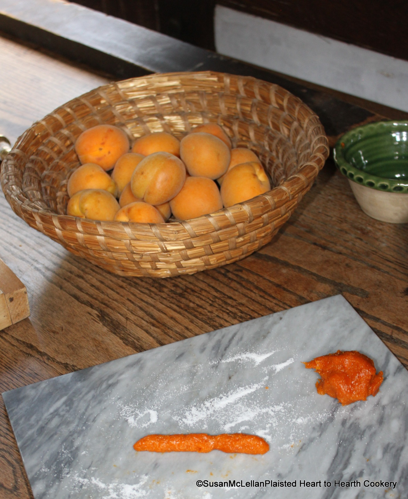 After the apricots bee so dry they will not stick to the dish, then make them up in to Roles as small as a Rush with fine sugar. I am using a marble board to roll the cooked apricots to prepare the receipt (recipe) Too make Jumbals of Apricocks.