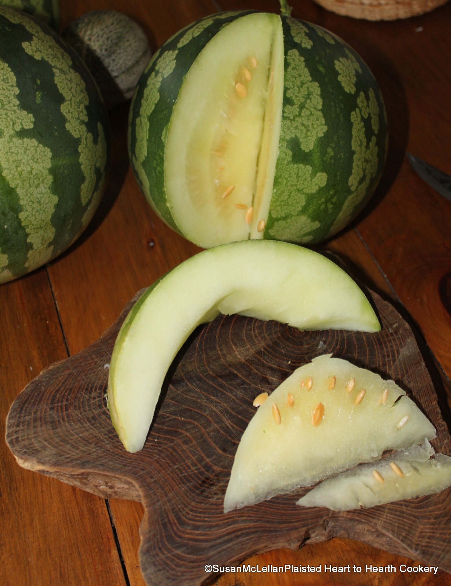 This bland, seedy, ancestor to the watermelon was referred to as The American Citron by Amelia Simmons in American Cookery published in 1796. But is it truly American? It was used by European colonists in America to preserve as they did the rind of a citron, a citrus fruit native to the Middle East and Mediterranean. But the origins of this old watermelon is Africa.