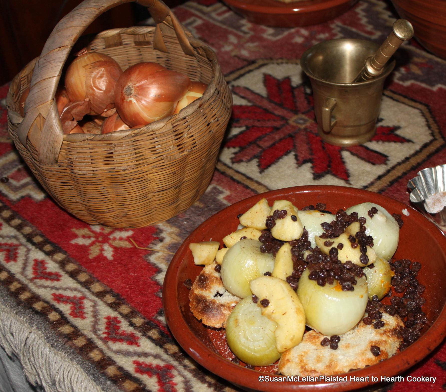For the presentation of the receipt (recipe) for Onions to Butter, the receipt describes: and butter them whole with boil’d Currants, Sugar, and and beaten Cinnamon; serve them up on Sippets, strew fine Sugar over them, and run them over with beaten Butter.