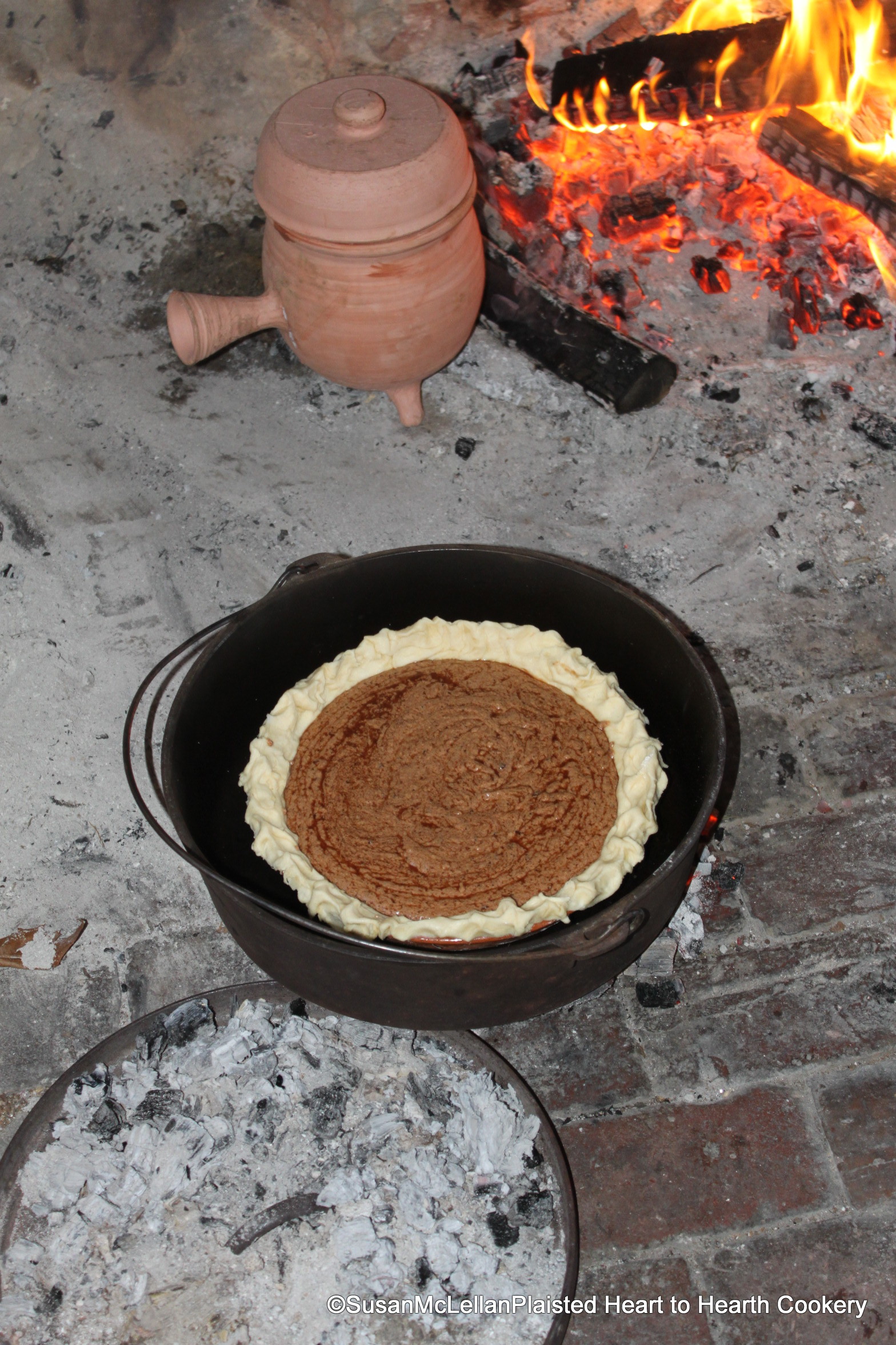 Having taken of your Cream (a mixture of milk, egg yolks, rice-flour, salt, cream and sugar), mix your Chocolate with it, stirring it well in, and set it by to cool. Then sheet a Tart-pan, put in your Mixture, bake it. The receipt (recipe) for To make a Chocolate Tart is now in the bake kettle ready for the lid and live embers.