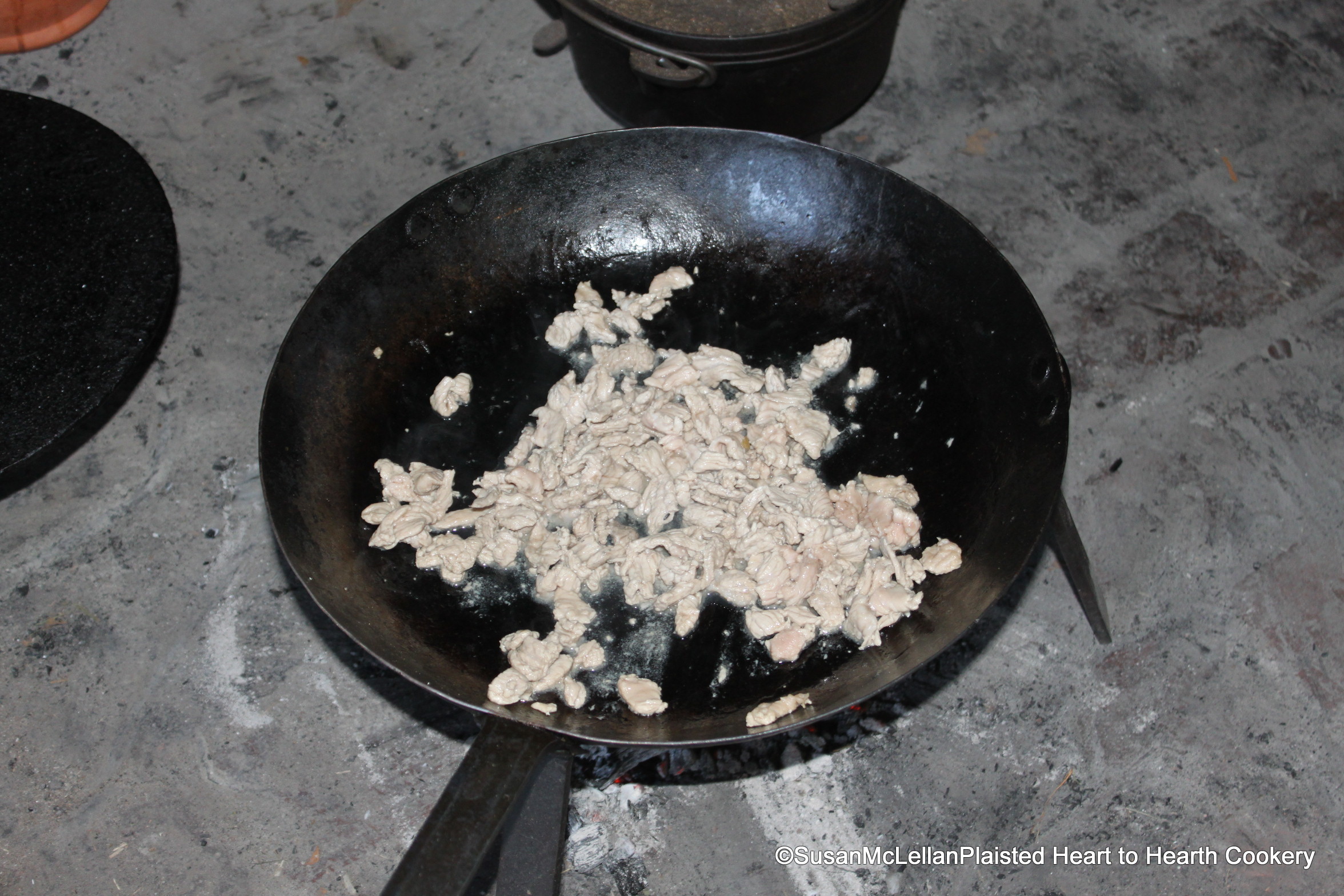 The chopped veal was cooked in the spider for the receipt (recipe) To make a chopped Hash, prior to being combined with the other ingredients.