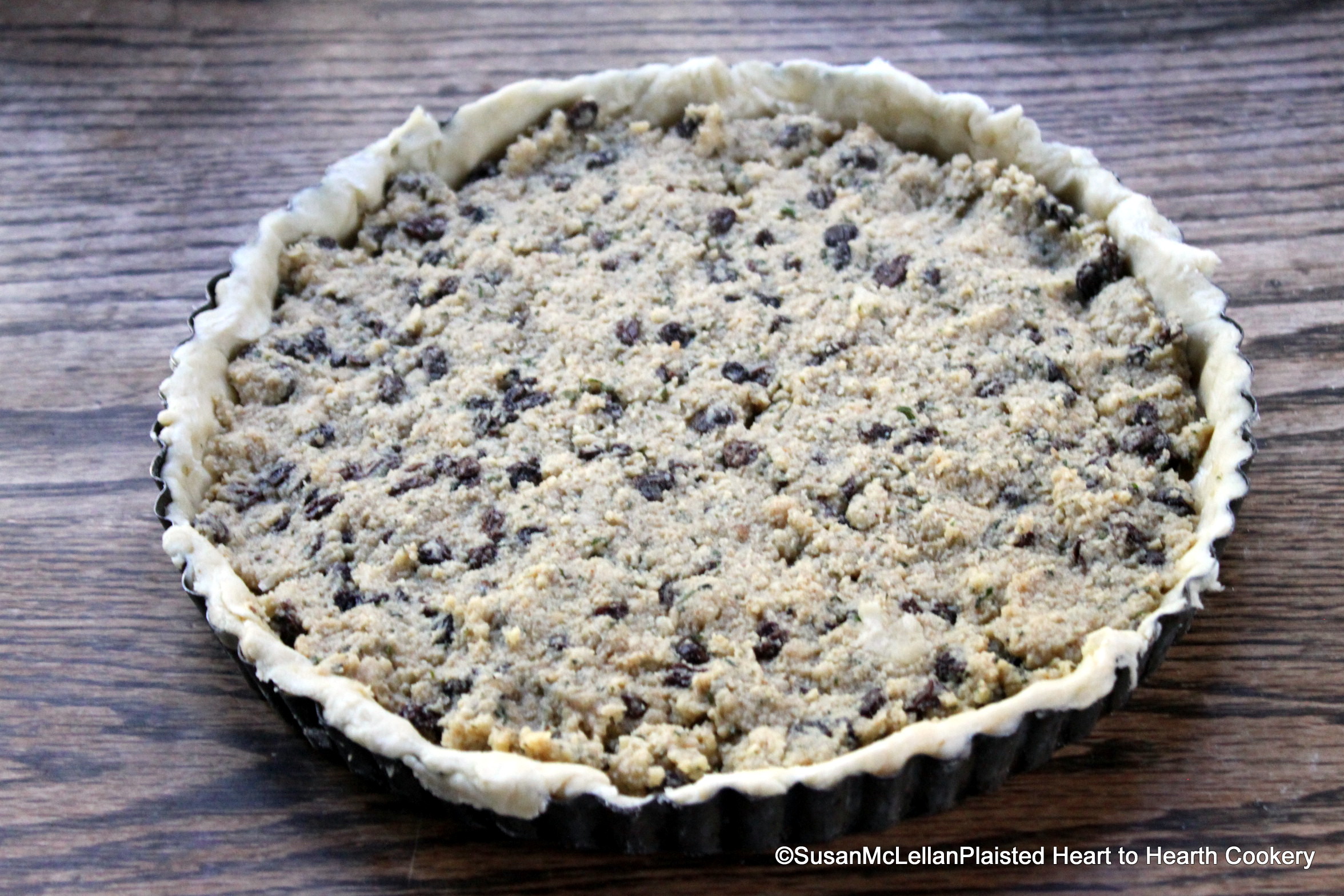 After the ingredients for the receipt (recipe), Chervil –taert in another manner, are boiled until a thick porridge, this porridge is placed in the Dough in the pan and sprinkled with crushed Cinnamon.