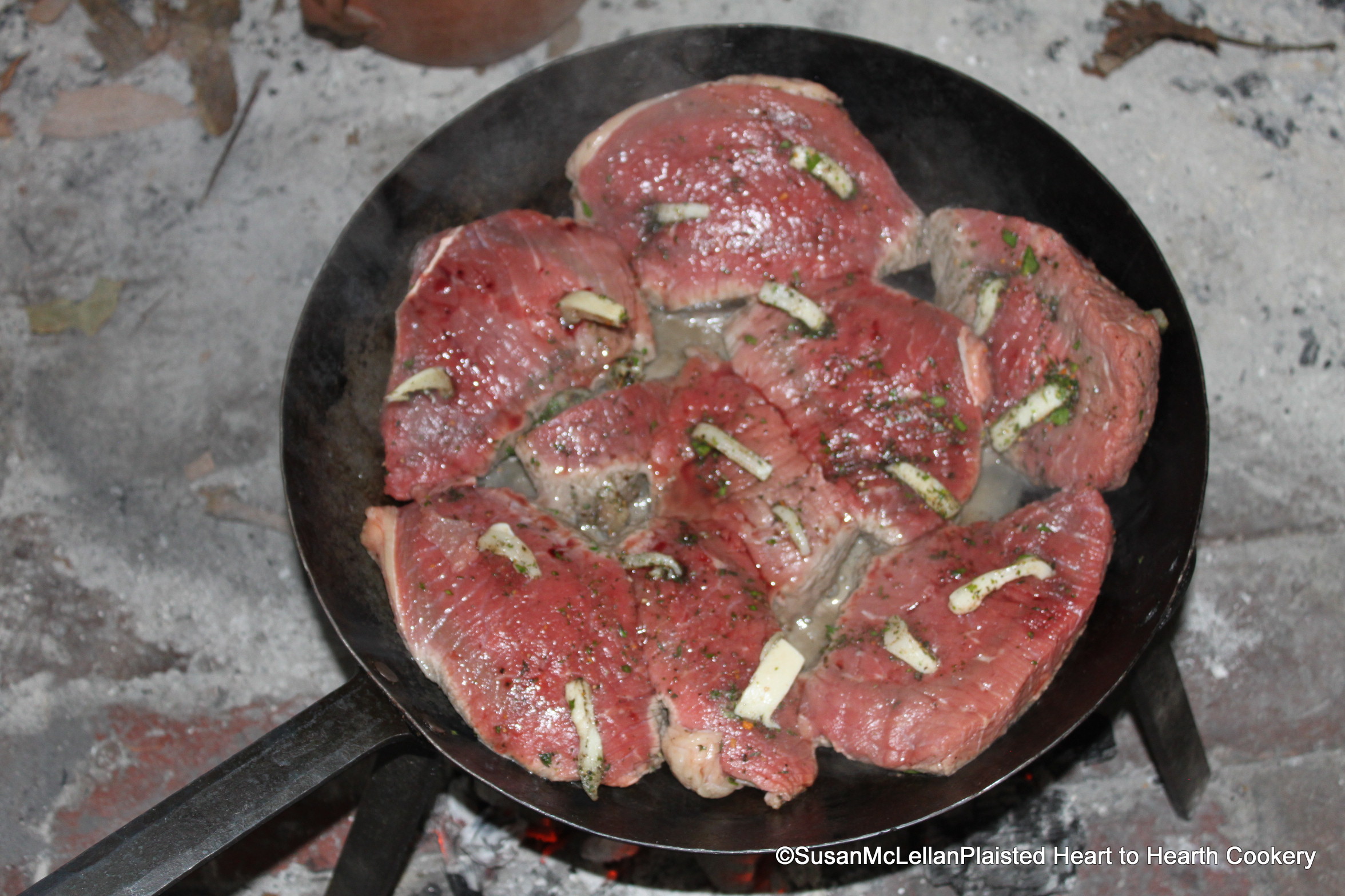 The receipt (recipe) for Beef a la Mode directs that you may either pass it (the pieces of beef) off brown or not. The beef pieces larded with Lard season’d were browned in the spider.