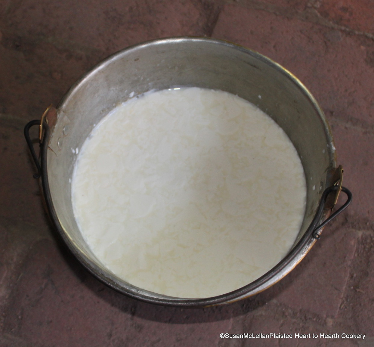 As it is snowing outside this March, the thoughts of spring dairy products is coming to mind. This receipt, made in Spring 2014, is for To make fresh Cheese and Cream. Take a pottle of milk as it comes from the cow, and a pint of cream, put to it a spoonful of runnet, and let it stand two hours. A pottle is a measure equivalent to two quarts.
