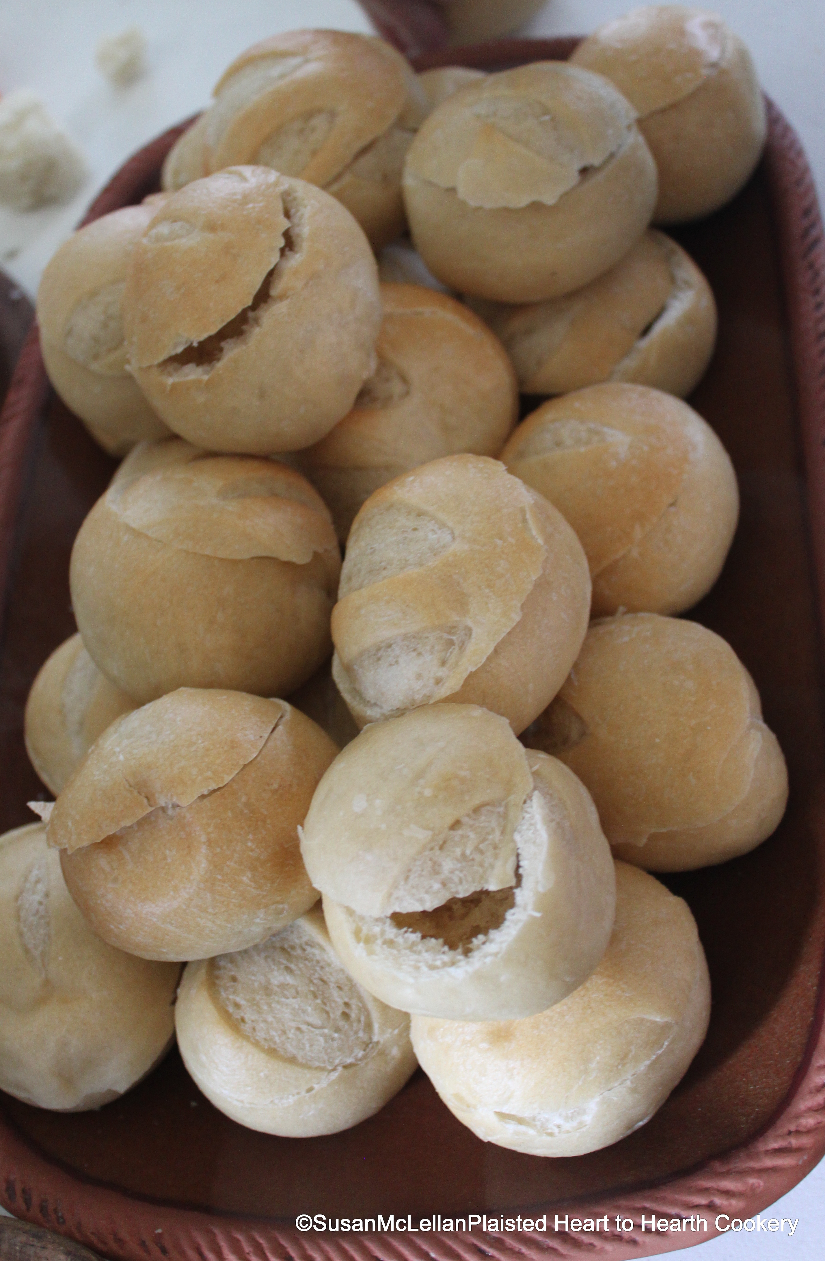 To prepare the receipt (recipe) for To make Oyster Loaves, take all the bread crumbs out of three French rolls, by cutting a piece of the top crust off, in such a manner as it may fit again in the same place. For the class, we used more and smaller rolls.
