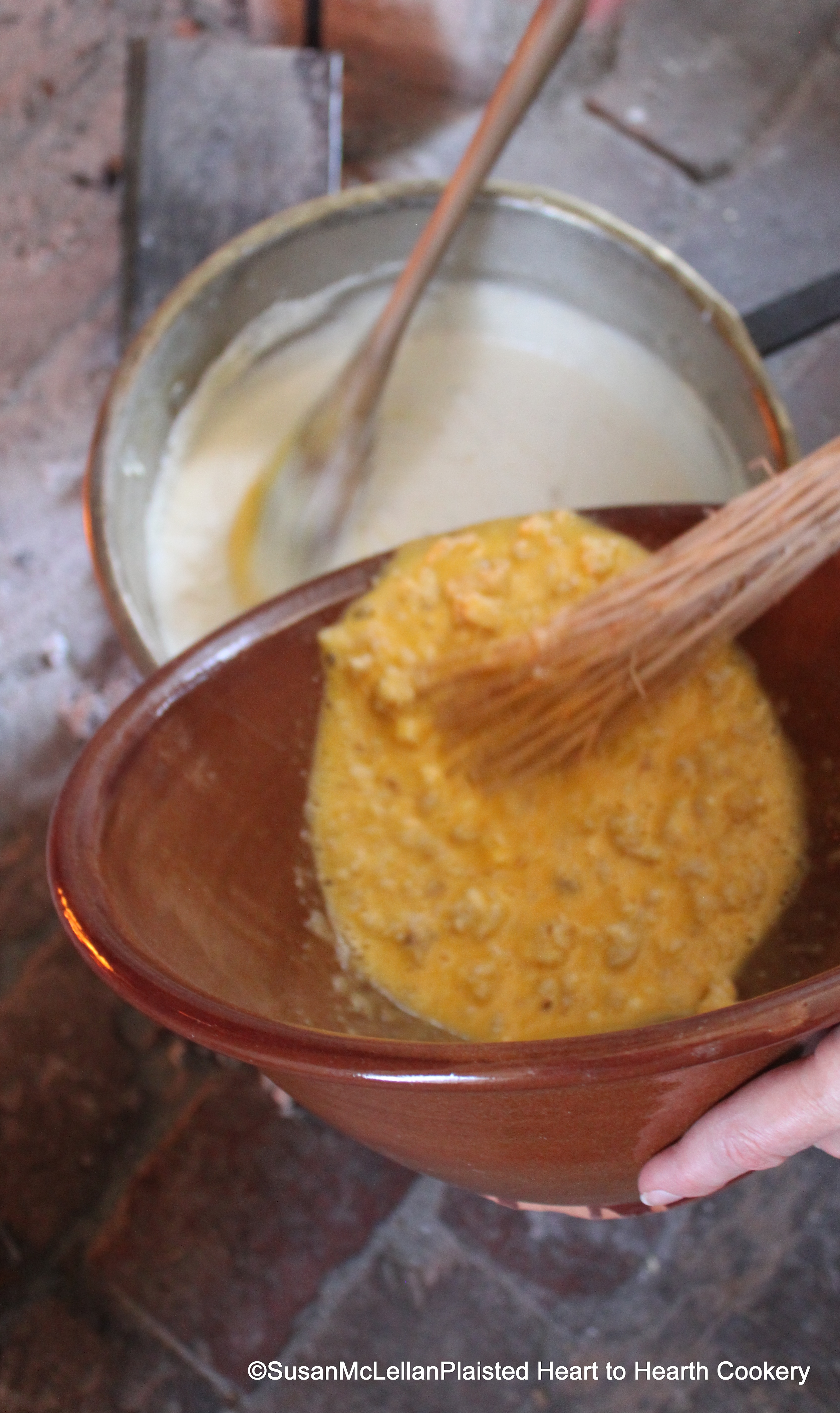The first line in the receipt (recipe) for To make a Marrow pudding is: Take a quart of cream or milk, and a quarter pound of Naples biscuit, put them on the fire in a stew-pan, and boil them up; then take the yolks of eight eggs, the whites of four beat up very fine, a little moist sugar, some marrow chopped; mix all well together, and put them on the fire, keep it stirring till it is thick.
