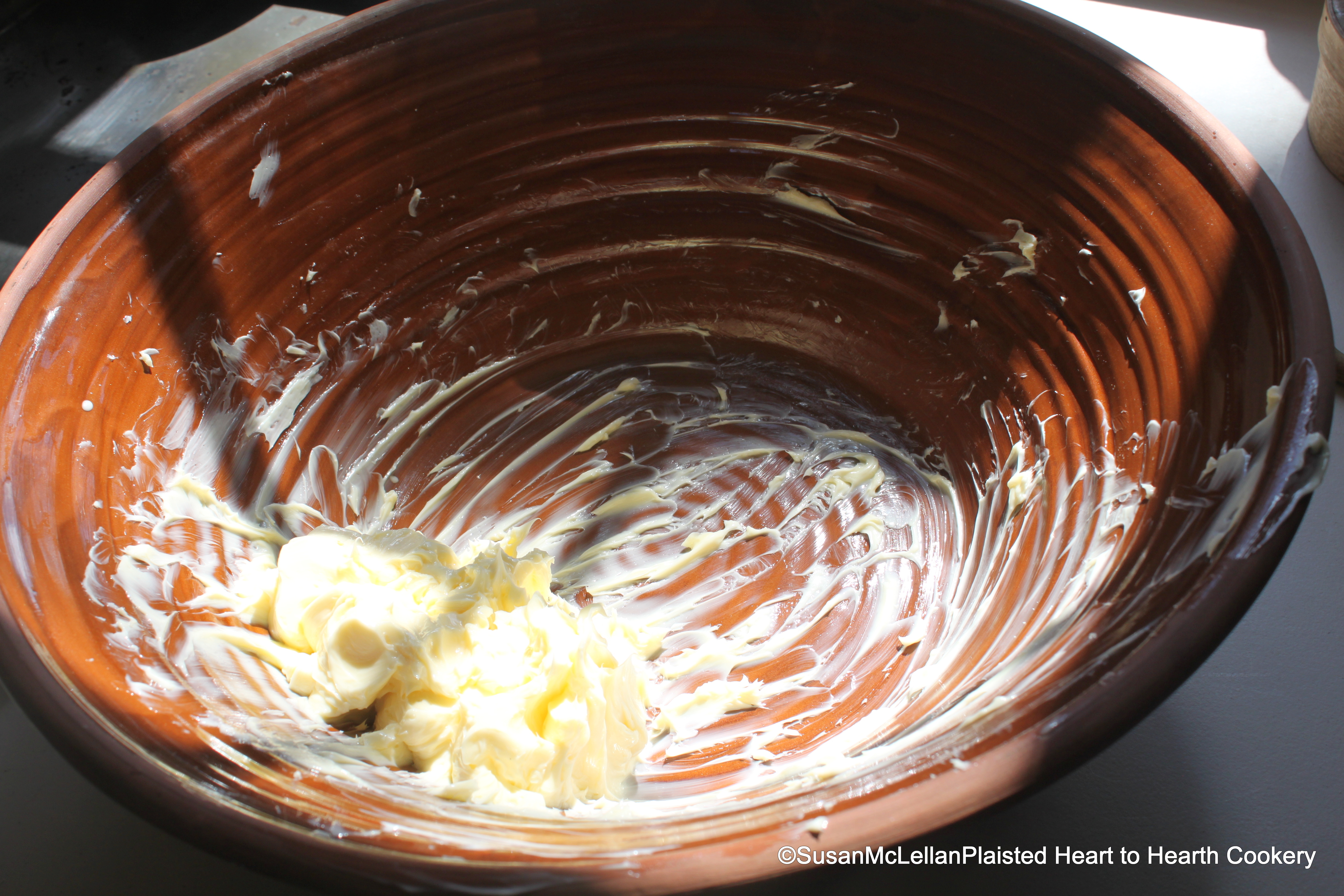 The first step in the preparation of the receipt (recipe), To make a Butter Cake, is You must take a dish of butter, and beat it like cream with your hands.