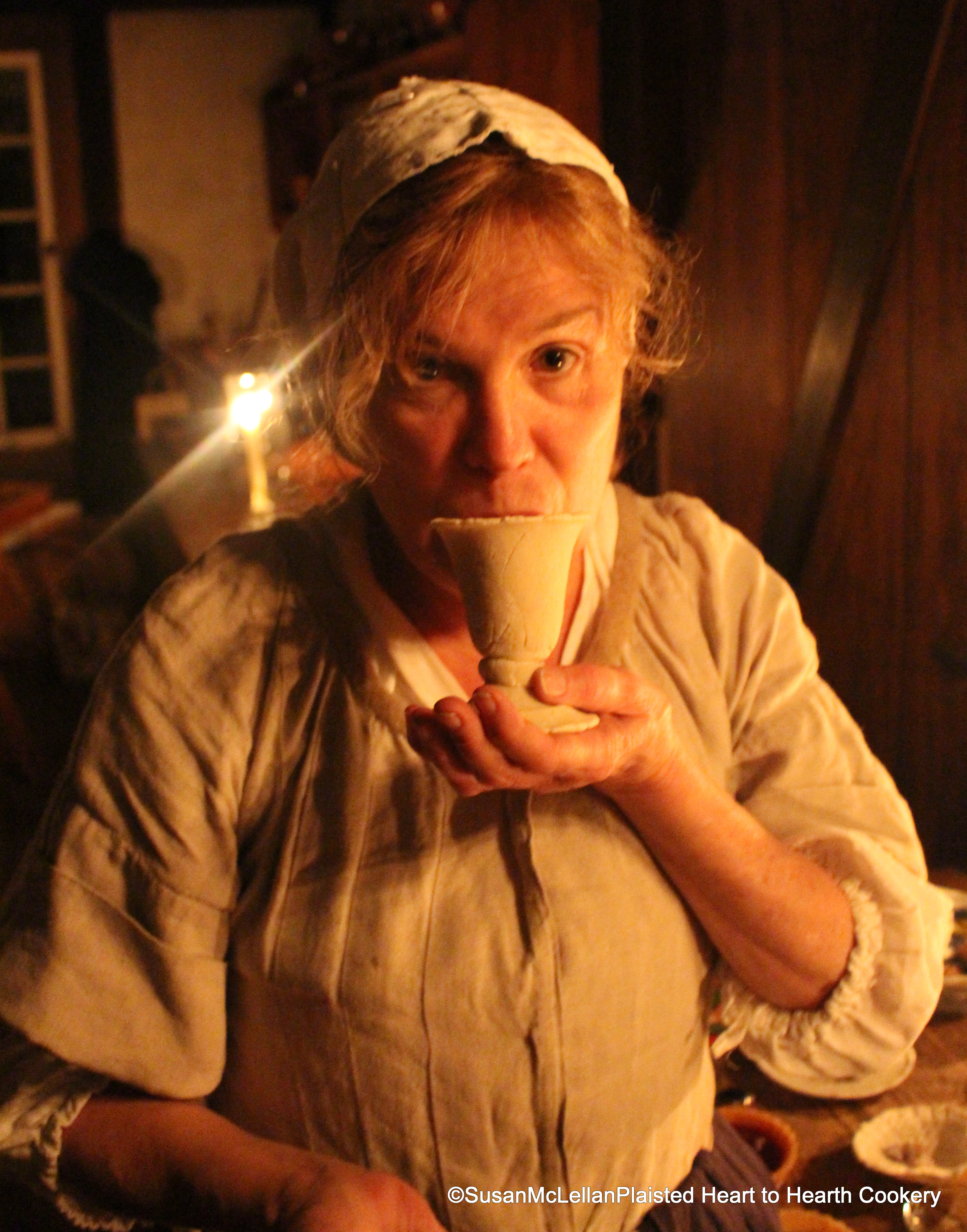 After the wine had set in the sugar plate goblet for an evening’s food history program, the wine was tasted to see what effect the sugar plate, from the receipt (recipe) To make Sugar plate paste, had on the taste of the wine.