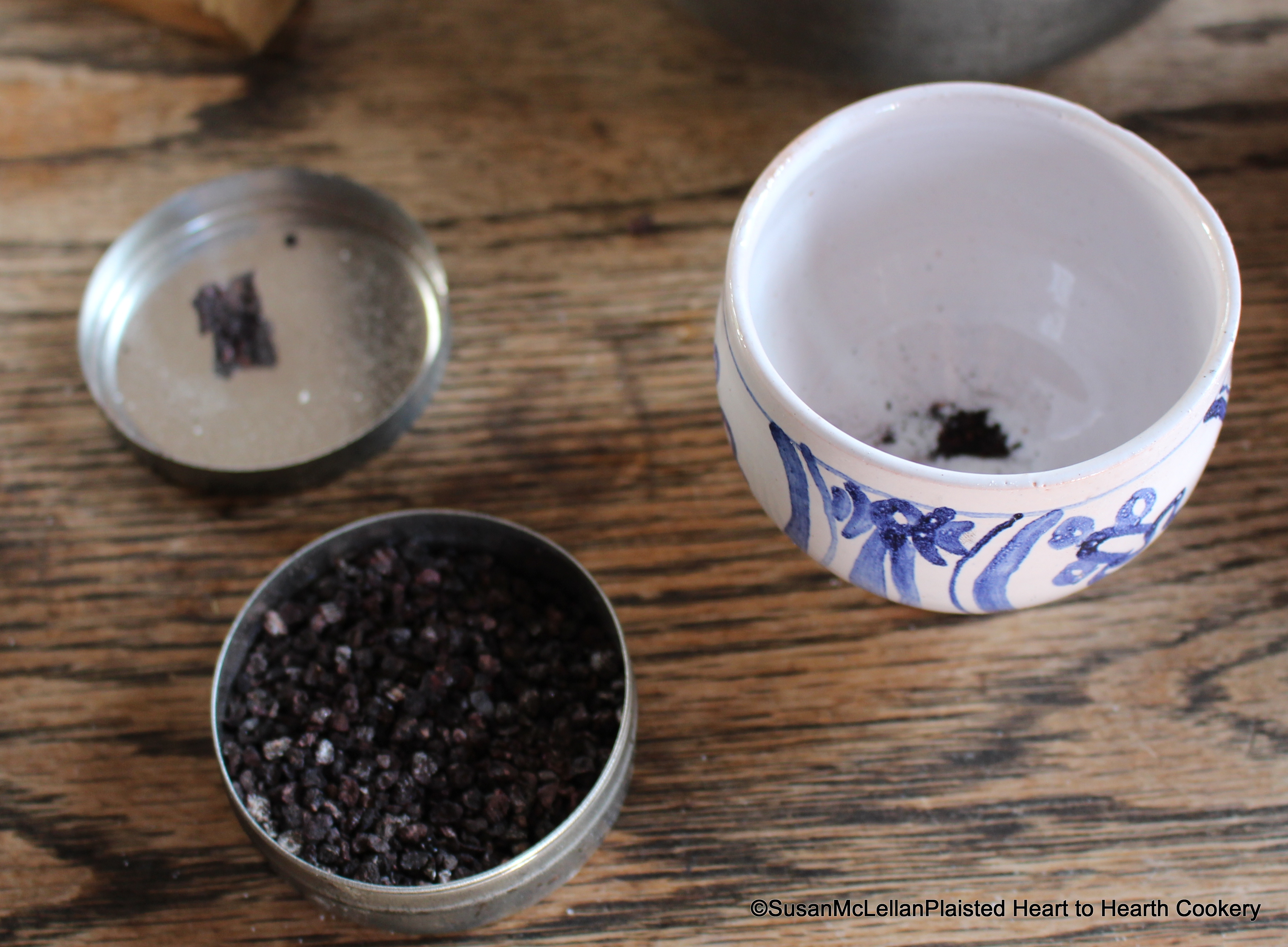 The cochineal colour brushed on the receipt (recipe) for Millefruit Biscuits, came from my tin of cochineal scales (Dactylopius coccus). The scales, which live on the prickly cactus, produce carminic acid (a red dye) to repel their predator ants.