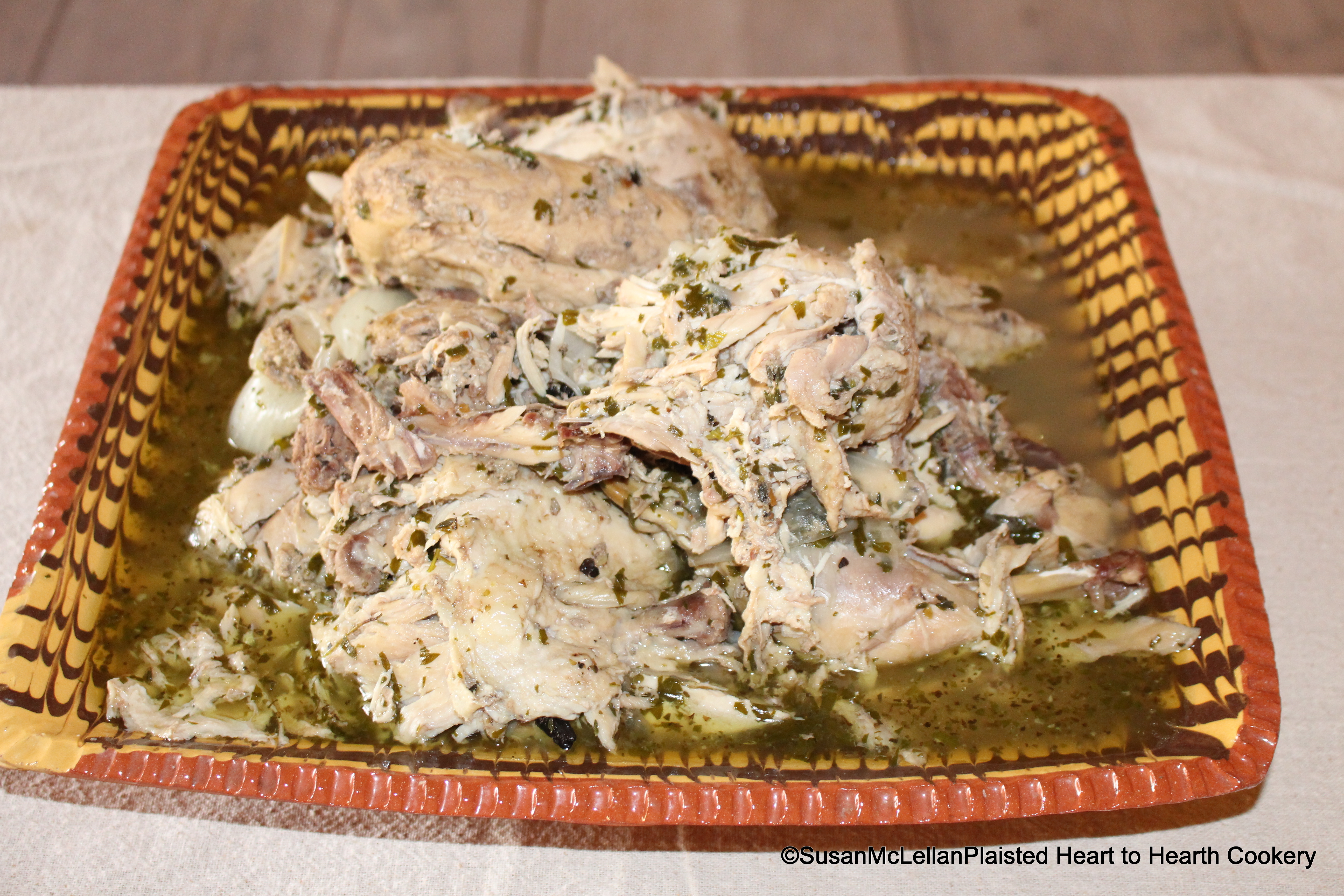 This is the receipt (recipe) for An exceeding good way to stew Chickens presented to table. The pieces of chicken were stewed in a redware pipkin with pepper, mace, onion, white wine, parsley, sweet marjoram, and a little thyme.