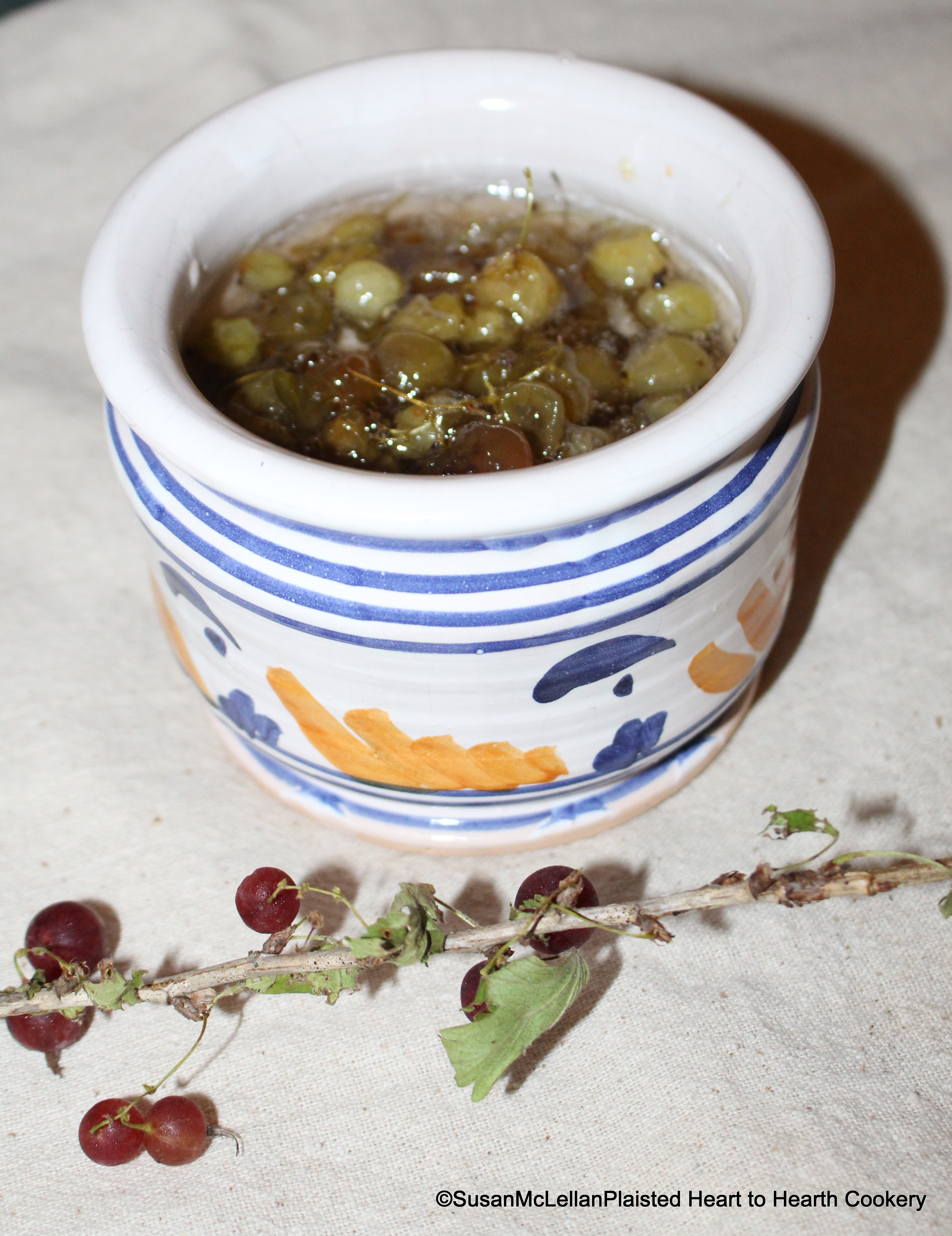 The gooseberries for the receipt (recipe) To preserve Gooseberries need to stand uncovered on a chafing dish of coals a pretty while but not too long as to grow red and you must put the rest of the Sugar on them as they boil, and that will harden them and keep them from breaking. When they be enough put them up. I have put mine up in a gally pot.