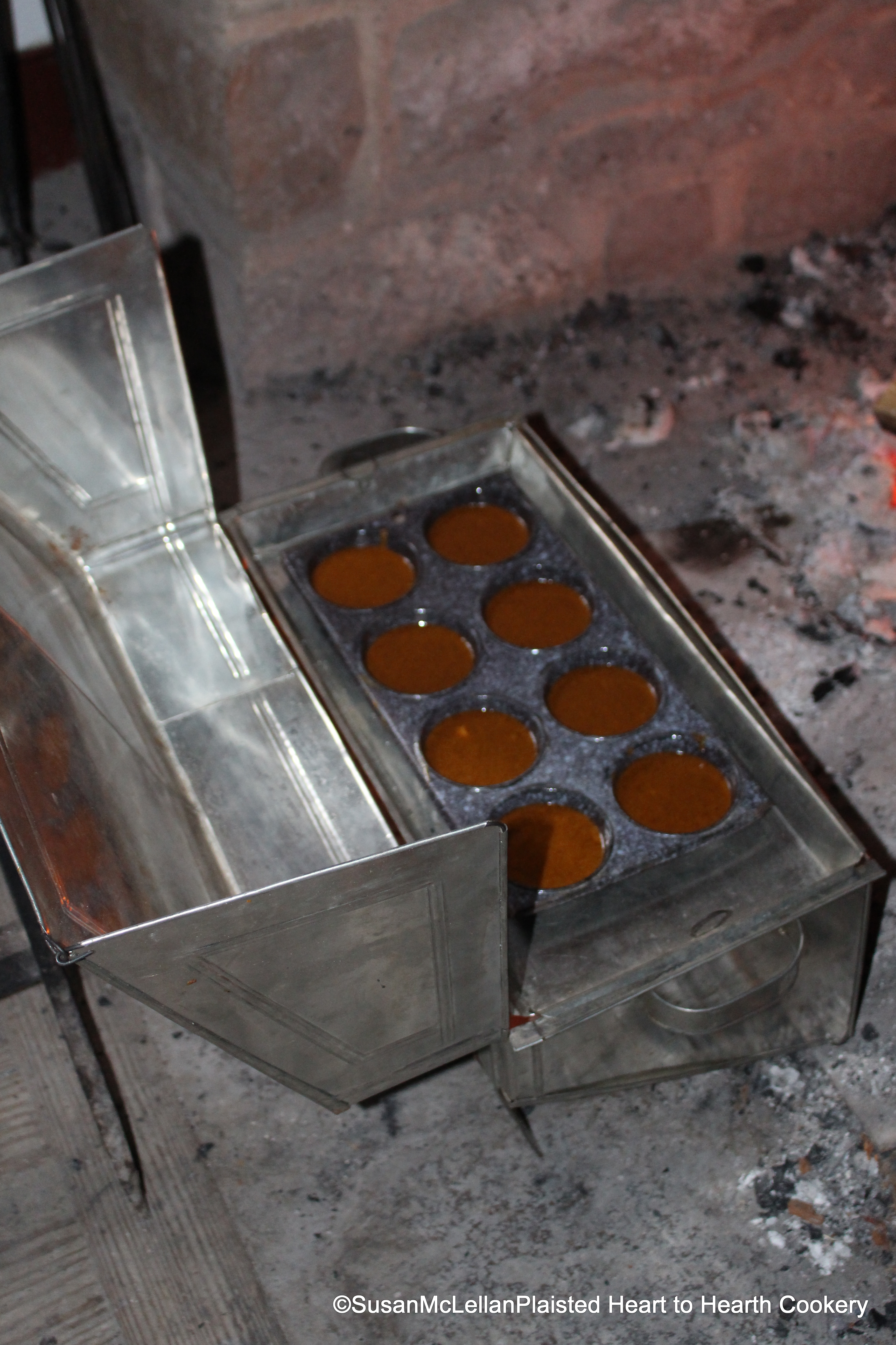 After all the materials were combined for Ellen Emlen’s receipt (recipe), Miss James Gingerbread, the individual gingerbreads were baked using a graniteware pan in a reflective tin baker.