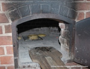 The coffin, containing the receipt (recipe), To bake Chicken for to be eaten cold, was placed in the bake oven on a tin baking sheet using a bake oven peel.