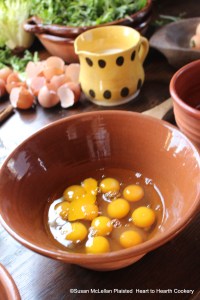 First then for making the receipt (recipe), To make the best tansy, you shall take a certain number of eggs, according to the bigness of your frying pan, and break them into a dish, abating ever the white of every third egg: then with a spoon you shall cleanse away the little white chicken knots which stick unto the yolks.