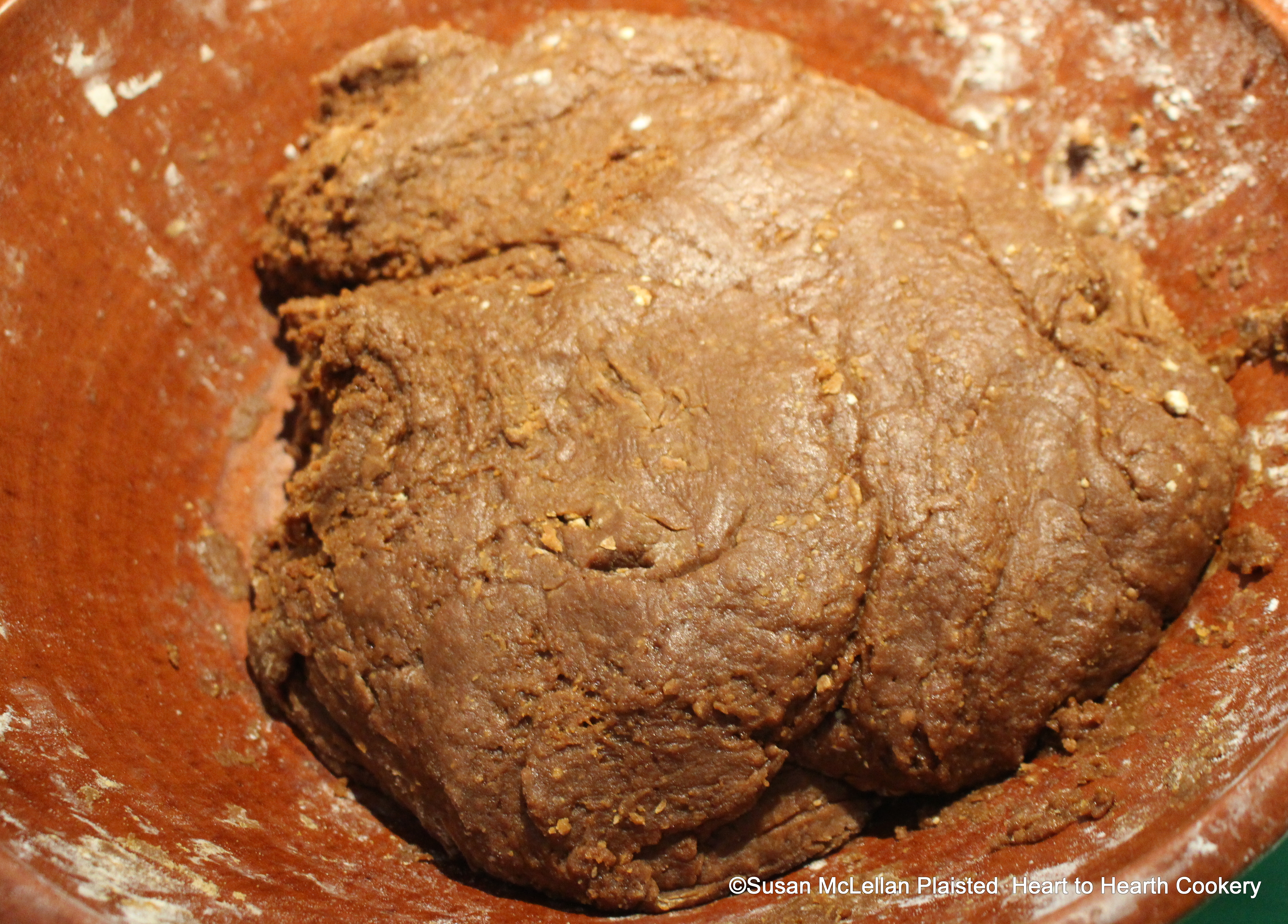 For the receipt (recipe), Plebian Ginger Bread, mix three large spoonful of pounded ginger, with three quarts of flour–sift it, dissolve three tea-spoonful of pearl-ash in a cup of water, and pour it on the lfour; Melt half a pound of butter in a quart of molasses, mix it with the flour, knead it well.