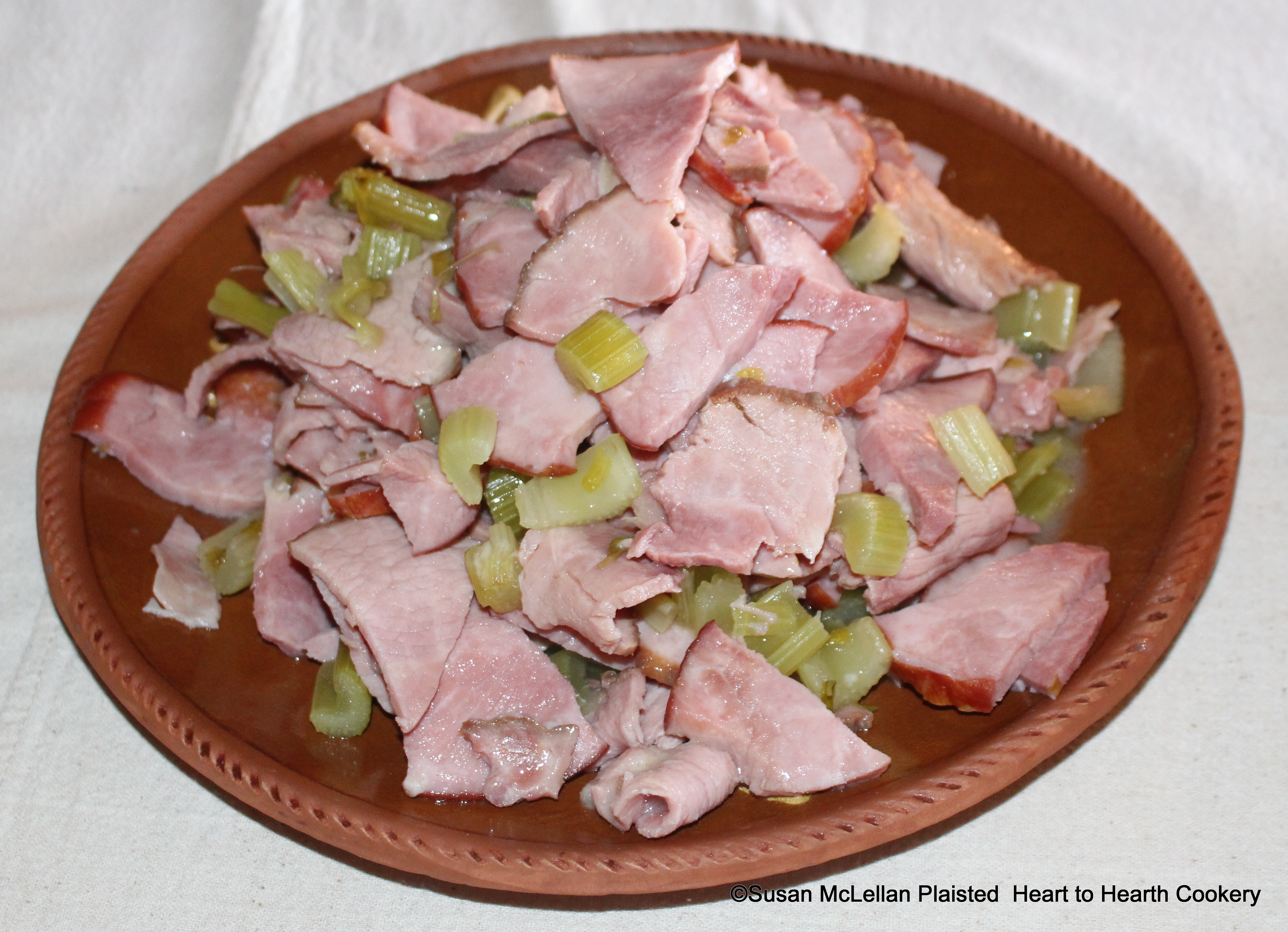 After the celery and cutlets of ham have simmered enough for the receipt (recipe), A Ragoo of Celery and Ham, put in a bit of butter as big as a walnut, worked up with a little flour, and a drop of vinegar, and then serve it up.