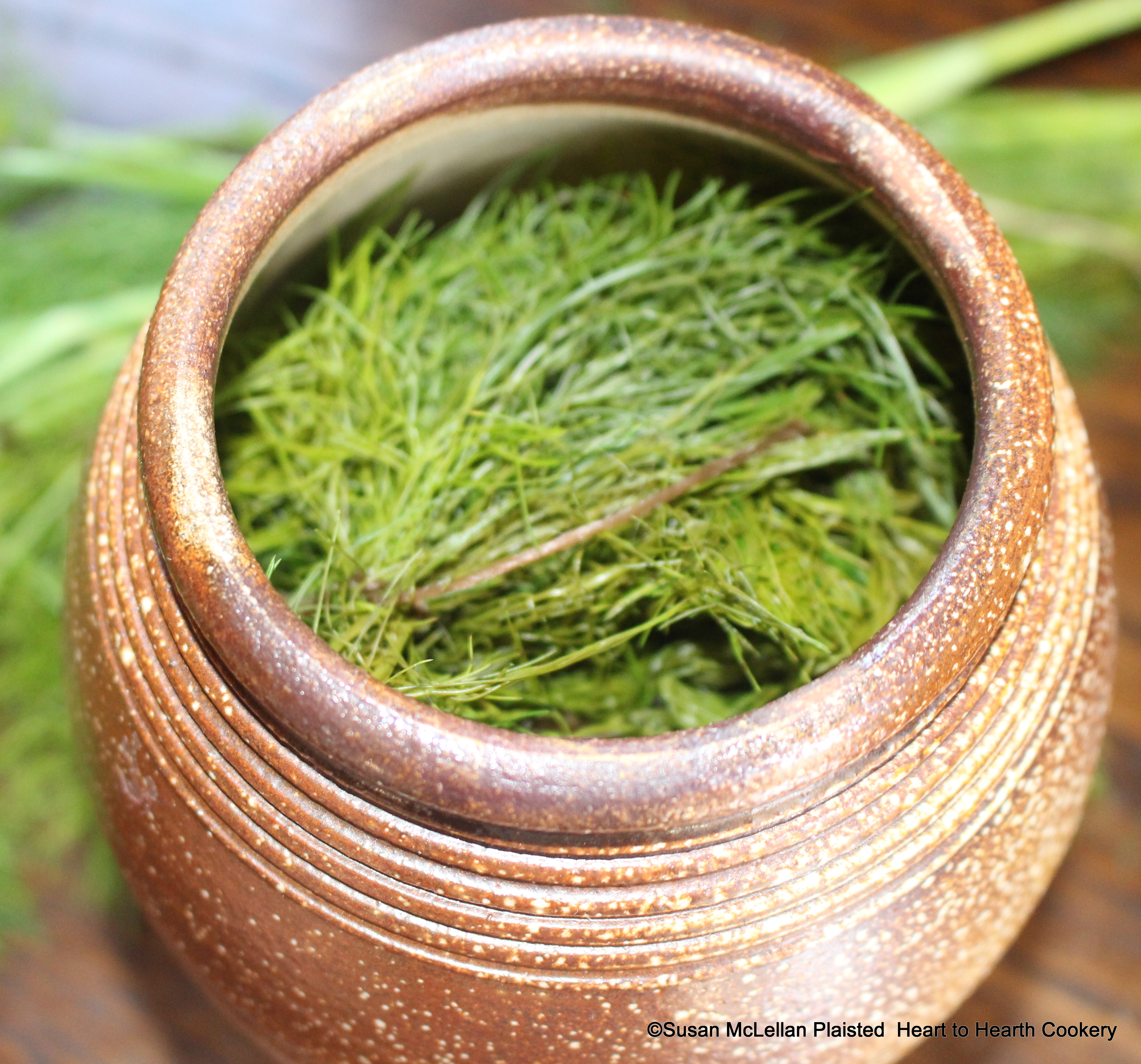 After the fronds of fennel tyed up in bunches have had half a dozen walms and been drained, they were placed in a stoneware crock ready to accept the pickle-let your pickle be vinegar.