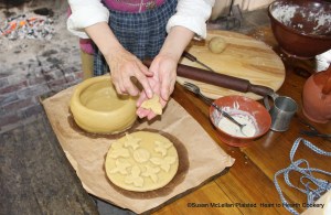 After the lard has been melted completely in the boiling water, it is added to flour and the coffin is built. The design on the lid is the designated design for the receipt (recipe) Other Tart of Pears per Robert May.