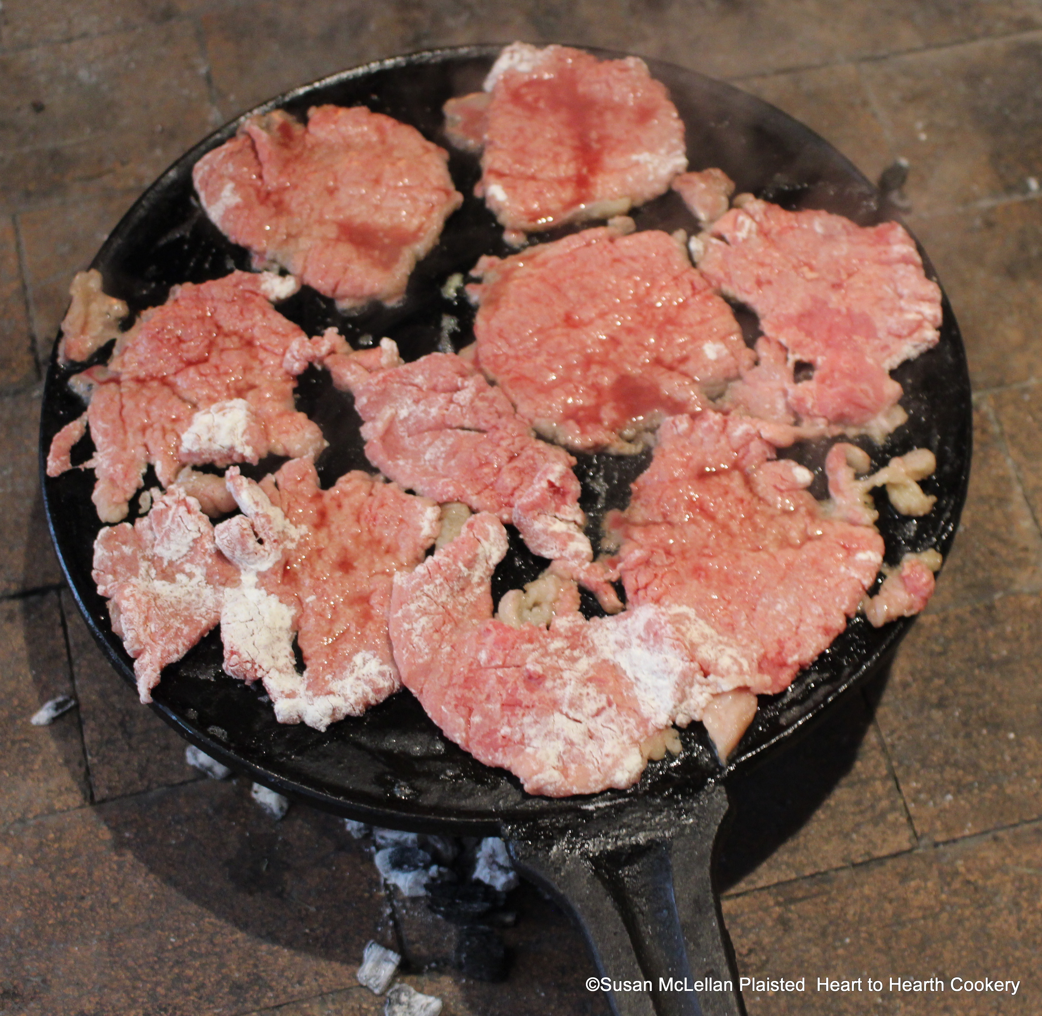 For the receipt (recipe), To dress Beef Callops, take any tender piece of beef…and cut collops rather large. Hash them with a knife, and flour them. Melt a little butter…and fry them quickly for about two minutes.