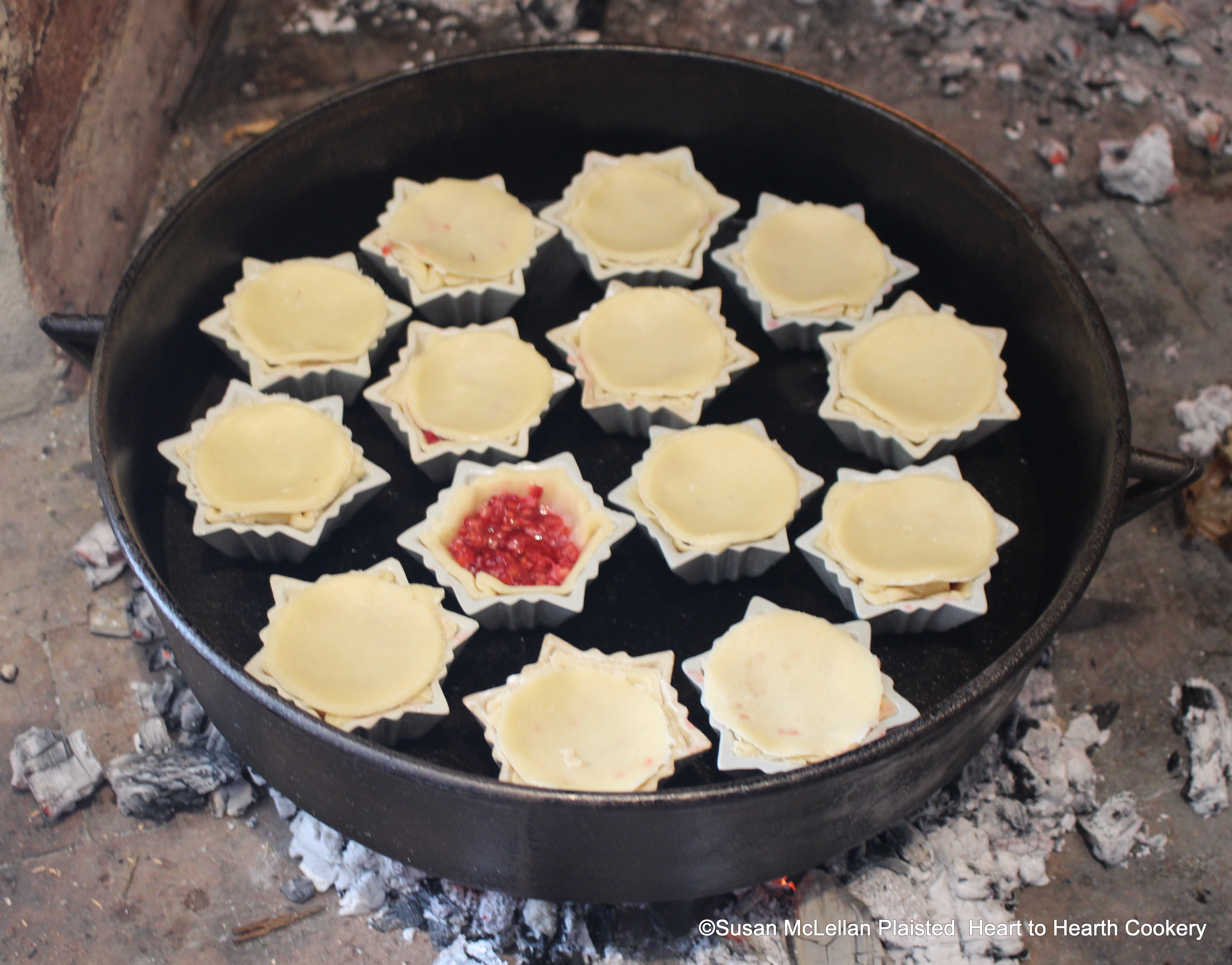 After the patty pans have been lined with some thin puff-paste for the receipt (recipe), A Raspberry Tart with Cream, the receipt directs to put on a lid and bake it. The paste lids are laid on gently as they will be removed after baking.