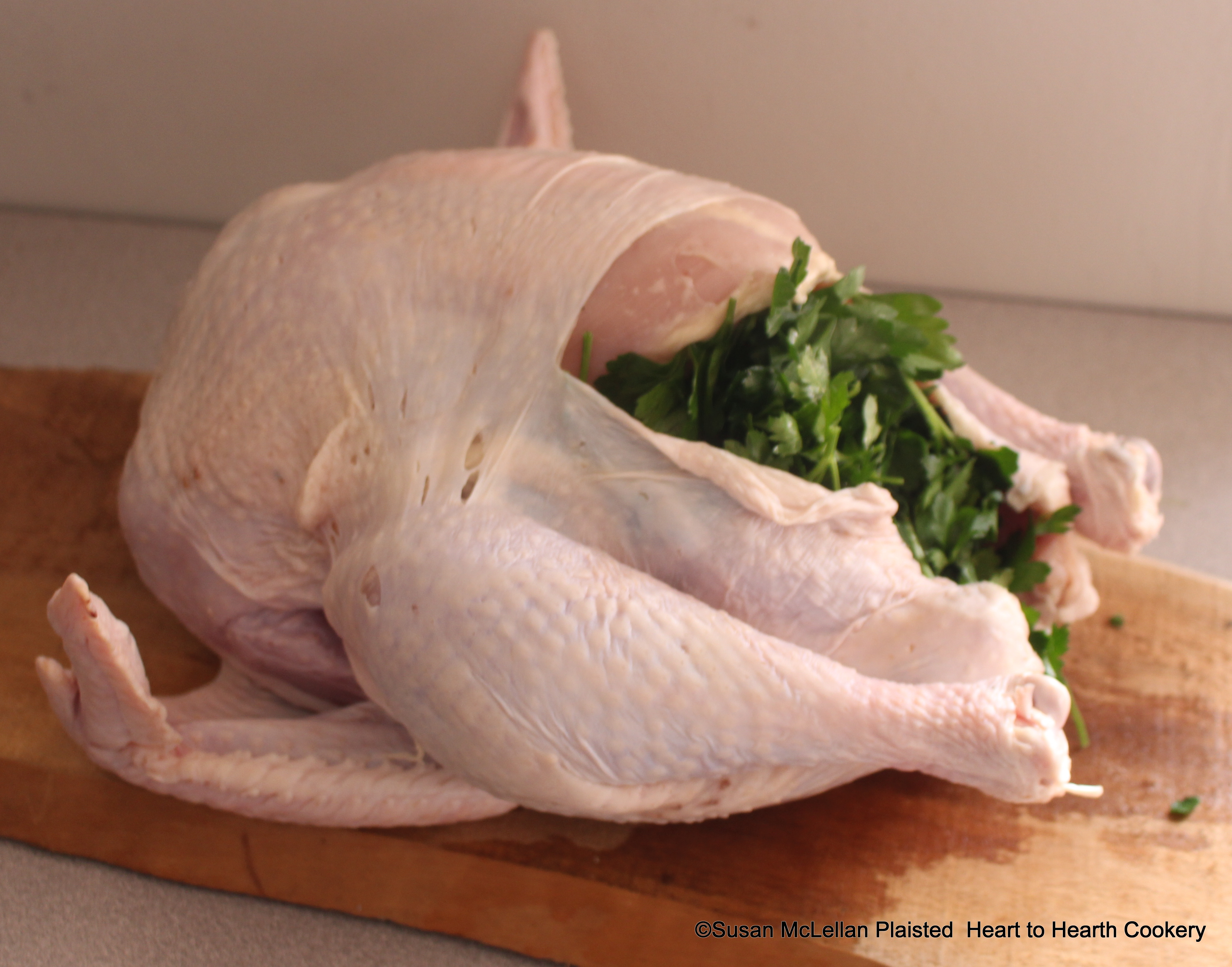 For the Dutch receipt (recipe), To nicely cook Turkey, after the turkey is cleaned inside and washed, fill it and cram full with parsley.