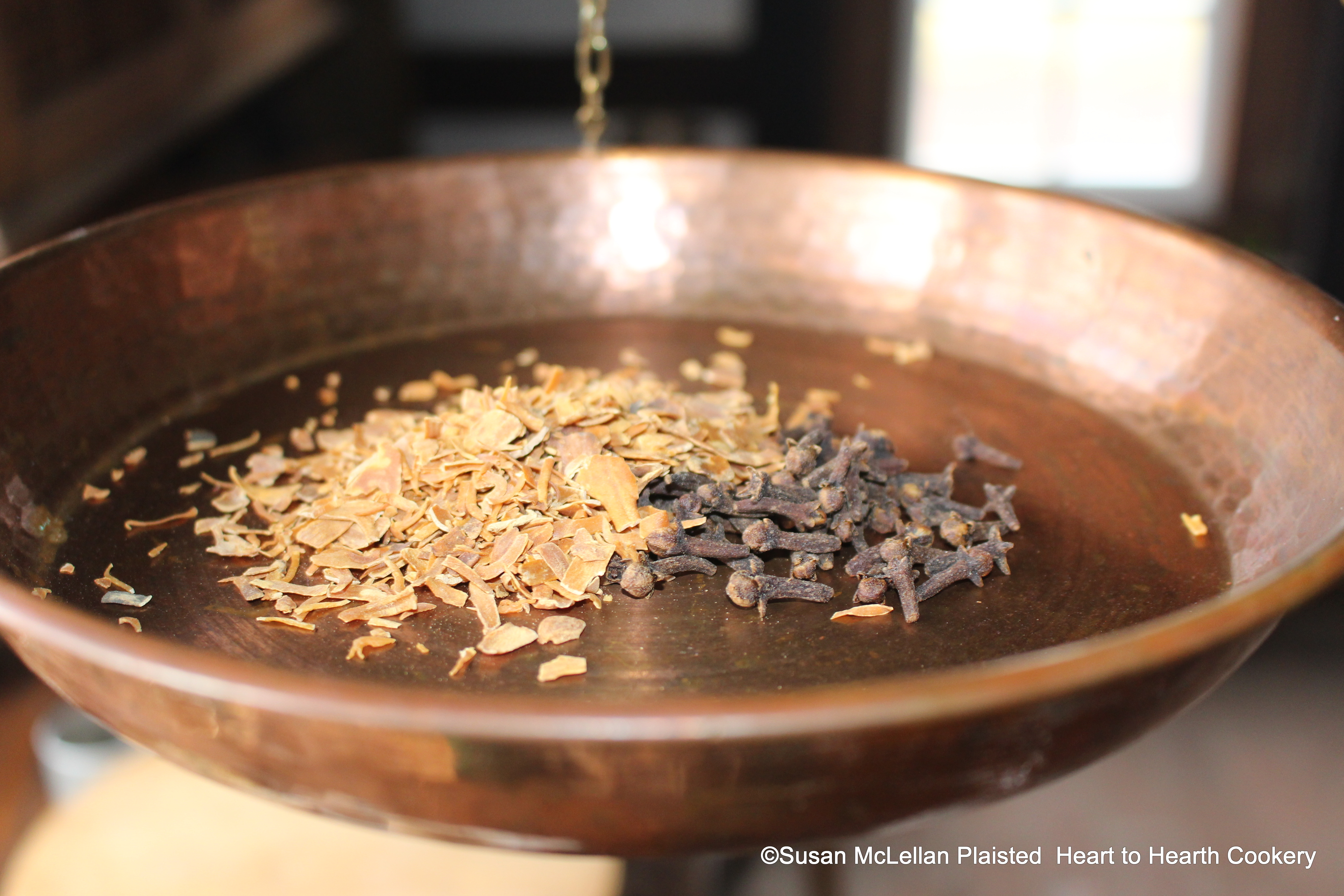 The spice that was weighed and prepared for the receipt (recipe), To make an excellent Plum Cake, was a quarter of an Ounce of Cloves and Mace. After being made fine, they were added to the batter of flour, currants, raisins, blanched almonds beat fine with rose water, butter, cream, ale-yeast, saffron steeped in sack, and ten eggs (but only half the whites).