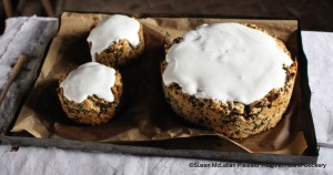 The receipt (recipe), To make an excellent Plum Cake, after being iced with an icing made from egg white, sugar, and orange flower water are placed back in the bake oven so the icing will set but not brown. The cakes are now ready for the table.