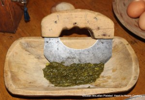 After the two handfuls of garden sorrel have been boiled for four minutes in water for the receipt (recipe), Sorrel Sauce, strain it off, and press the water from it, and chop it fine.