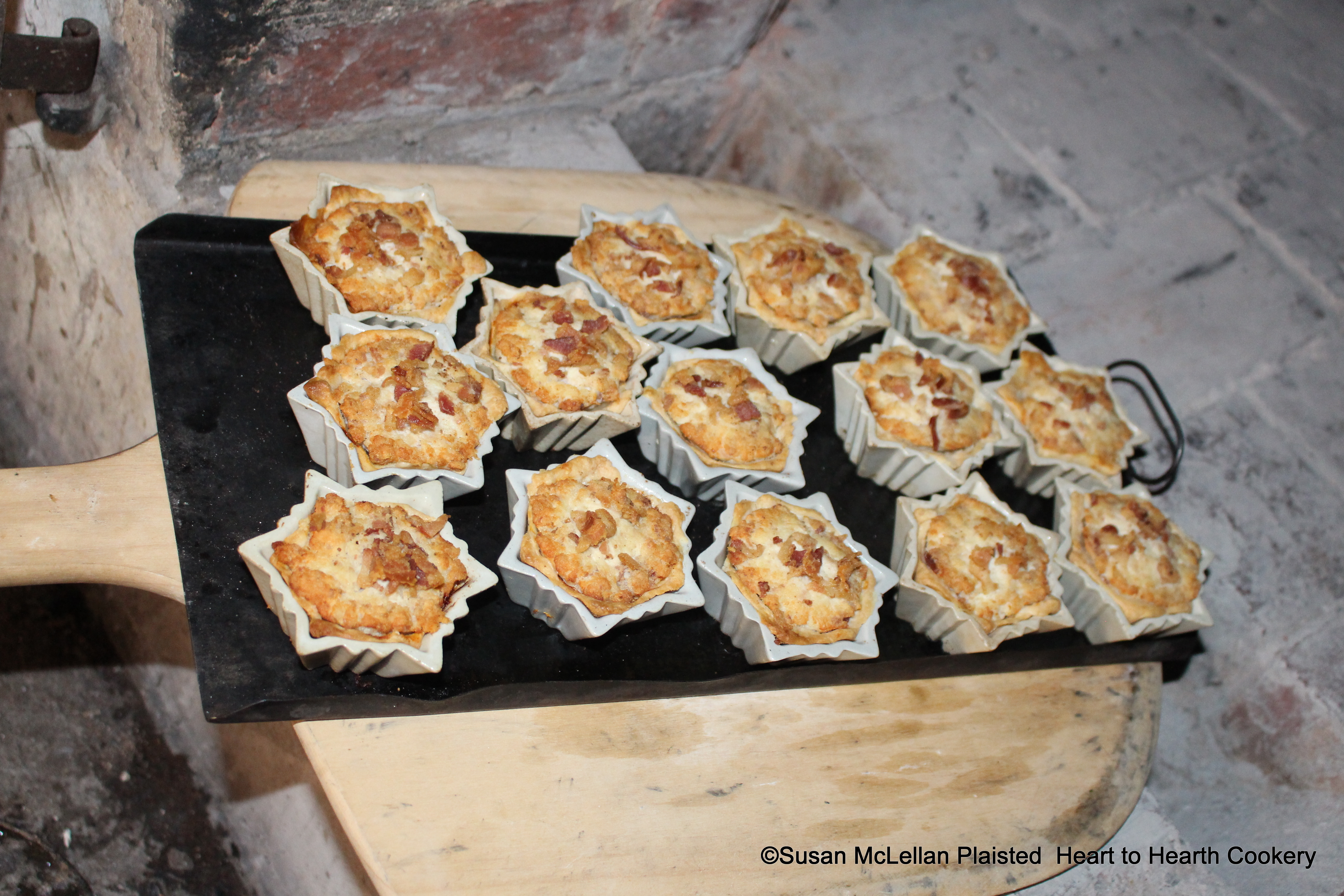 The receipt (recipe), Petit Patez or Little Pies, is pictured on my peel having just been removed from the bake oven. They have been made with bacon, veal, and chicken first parboiled, then minced and finally pounded with a mortar and pestle with spices and garlic.