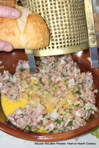 In addition to the fowl, veal, and bacon (well minc’d) in the Farce for the receipt (recipe), The Manner of Dressing a farc’d Cabbage for a Side-Dish, Parsley, a clove of Garlick…fine Herbs and Spice, some Bread-crum, two whole Eggs and two or three Yolks were added.