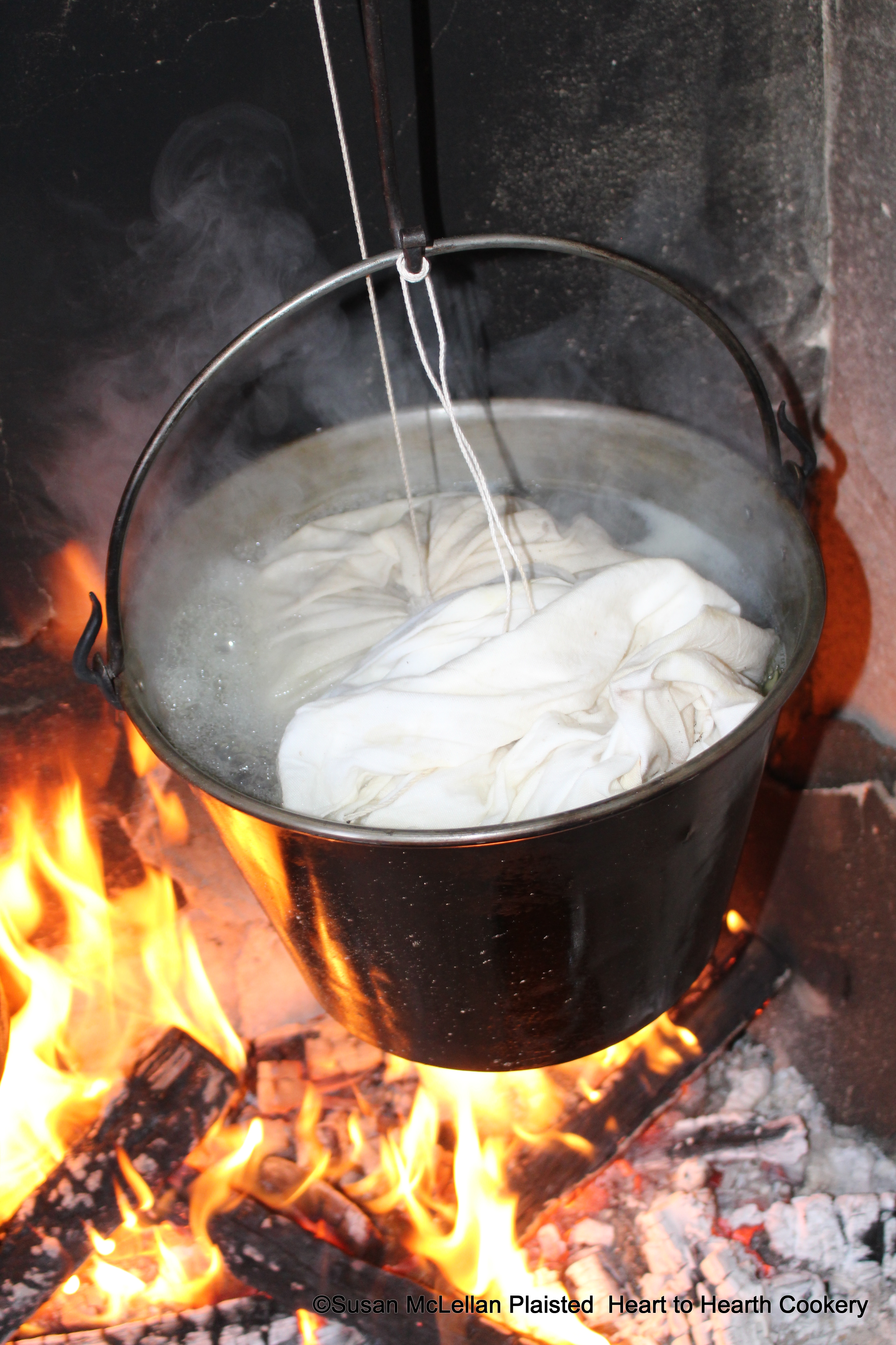 After the cabbage has been stuffed with a farce prepared from fowl, veal, bacon, parsley, garlic, bread crumbs, eggs, herbs and spices for the receipt (recipe), The Manner of Dressing a farc’d Cabbage for a Side-Dish, let it be clos’d, neatly tied up and put int a Pot or Stew-pan. The stuffed cabbage is pictured tied in a pudding bag.