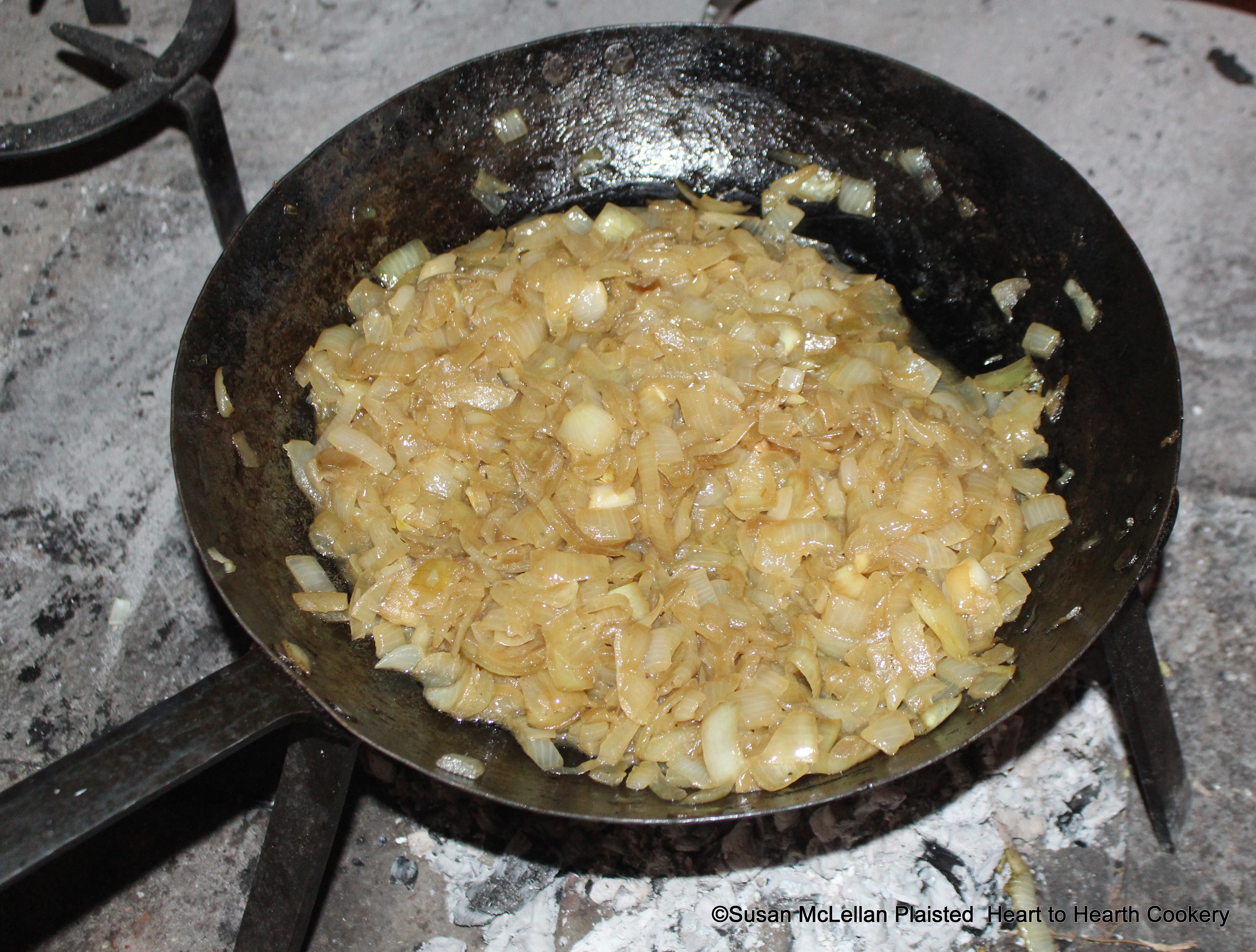 After the onions have been cut for the receipt (recipe), To make an Onion Soup, then fry them in butter till they are a little browne. The onions are frying in my large spider.